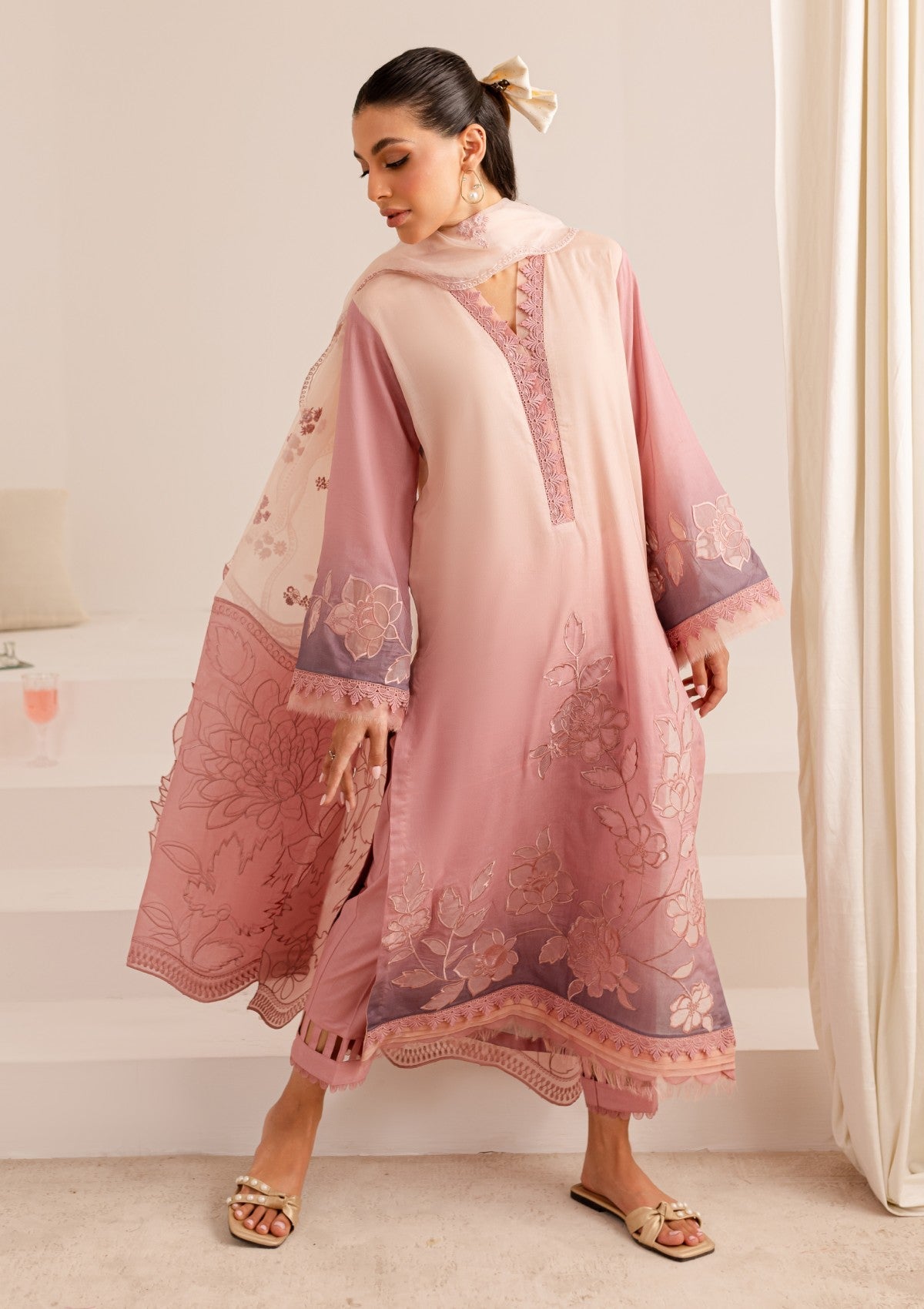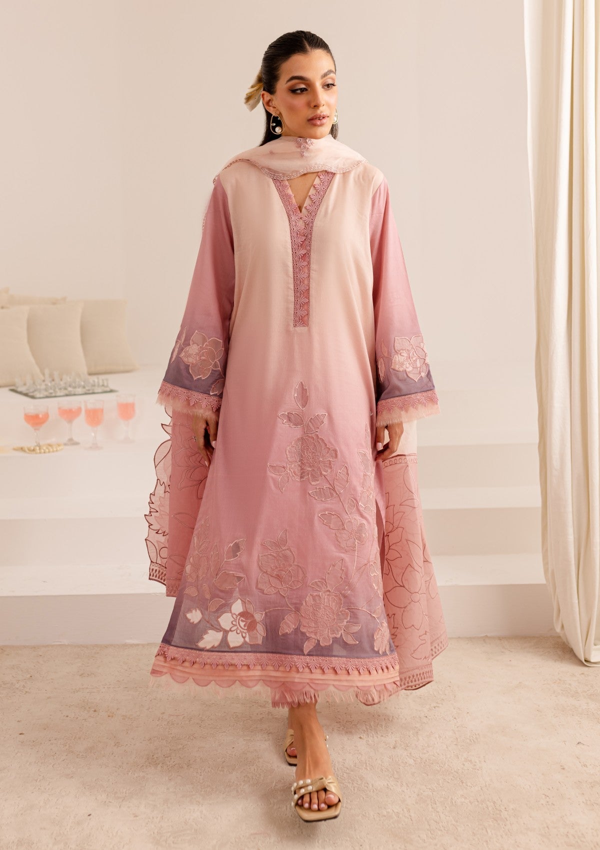 - Embroidered Laser Cut Lawn Shirt Paired With Embroidered Organza Duppatta And Dyed Cotton Trouser