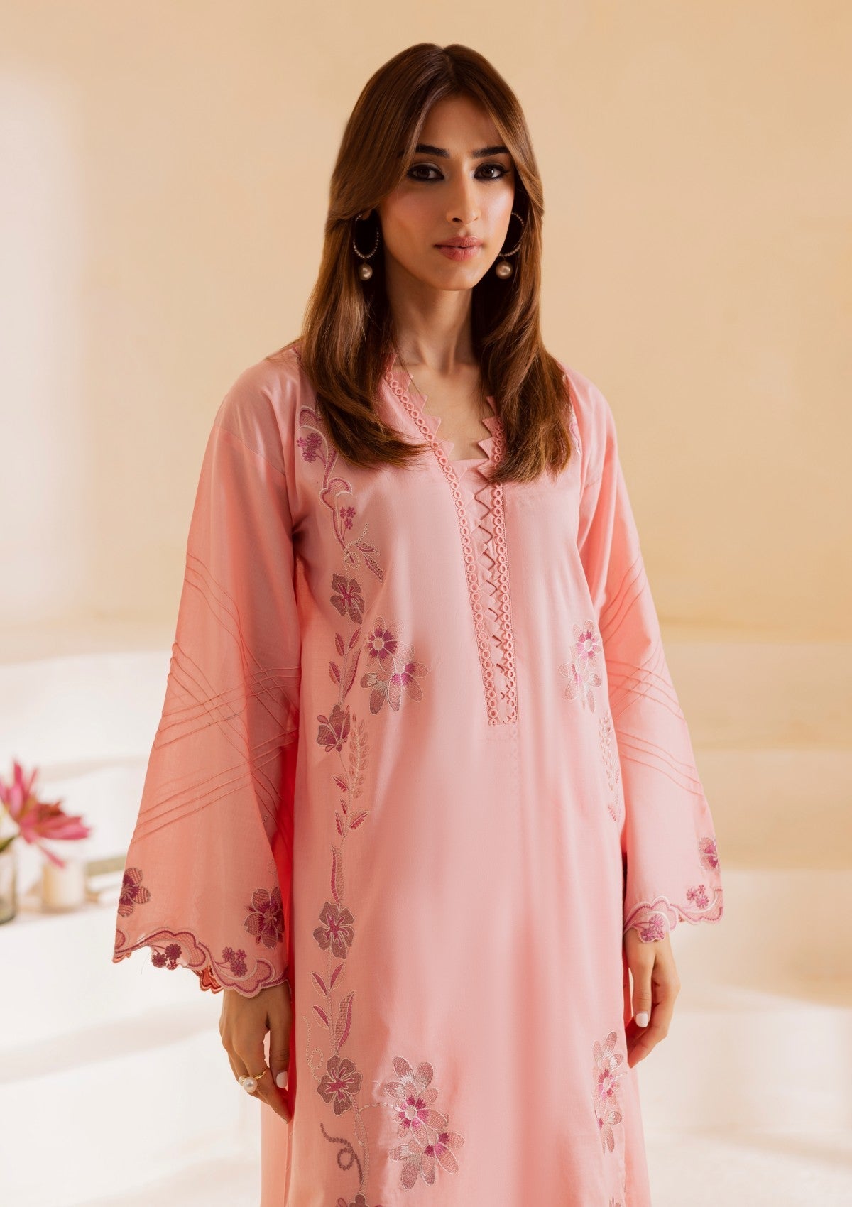 Embroidered Laser Cut Lawn Shirt Paired With Dyed Cotton Trouser