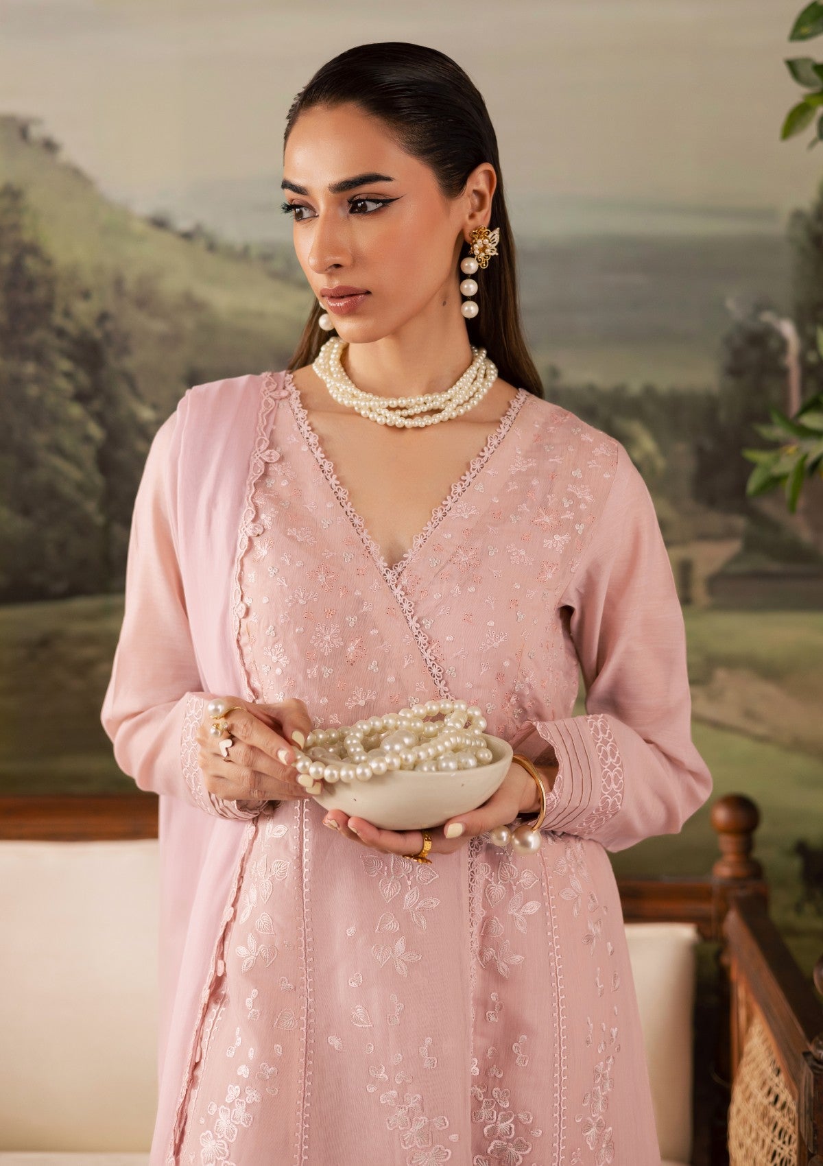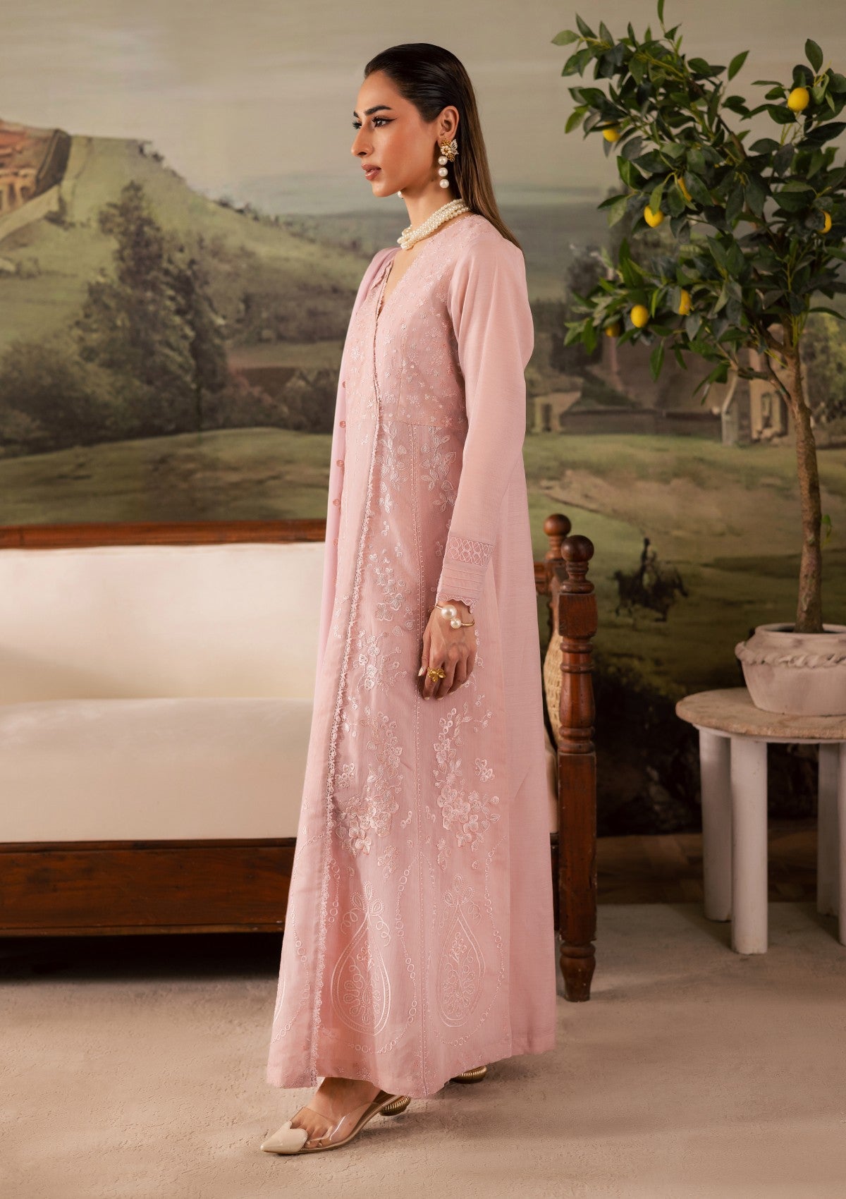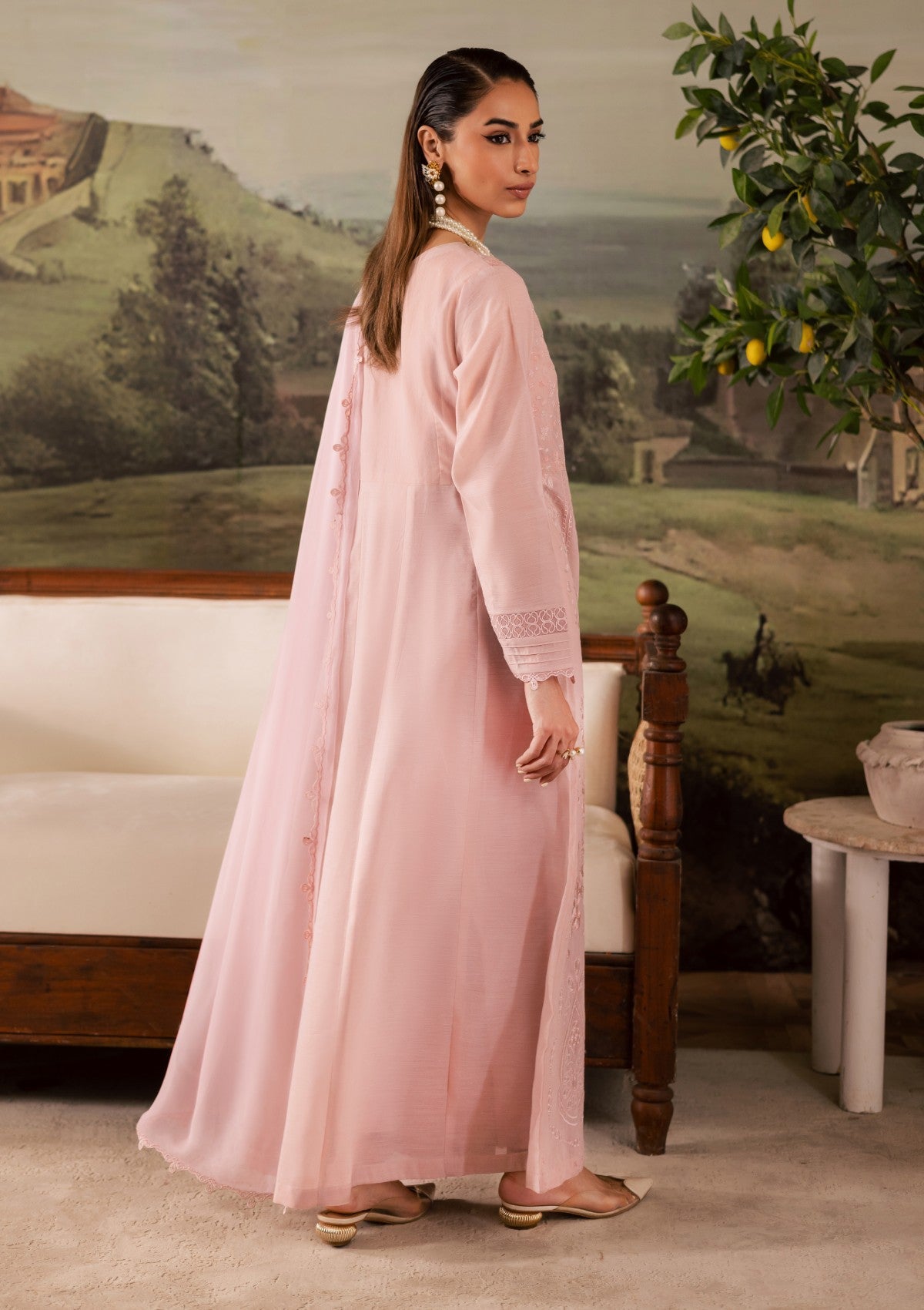 - Embroidered Paper Cotton Frock Paired With Embroidered Chiffon Dupatta, Dyed Cotton Trouser And Inner