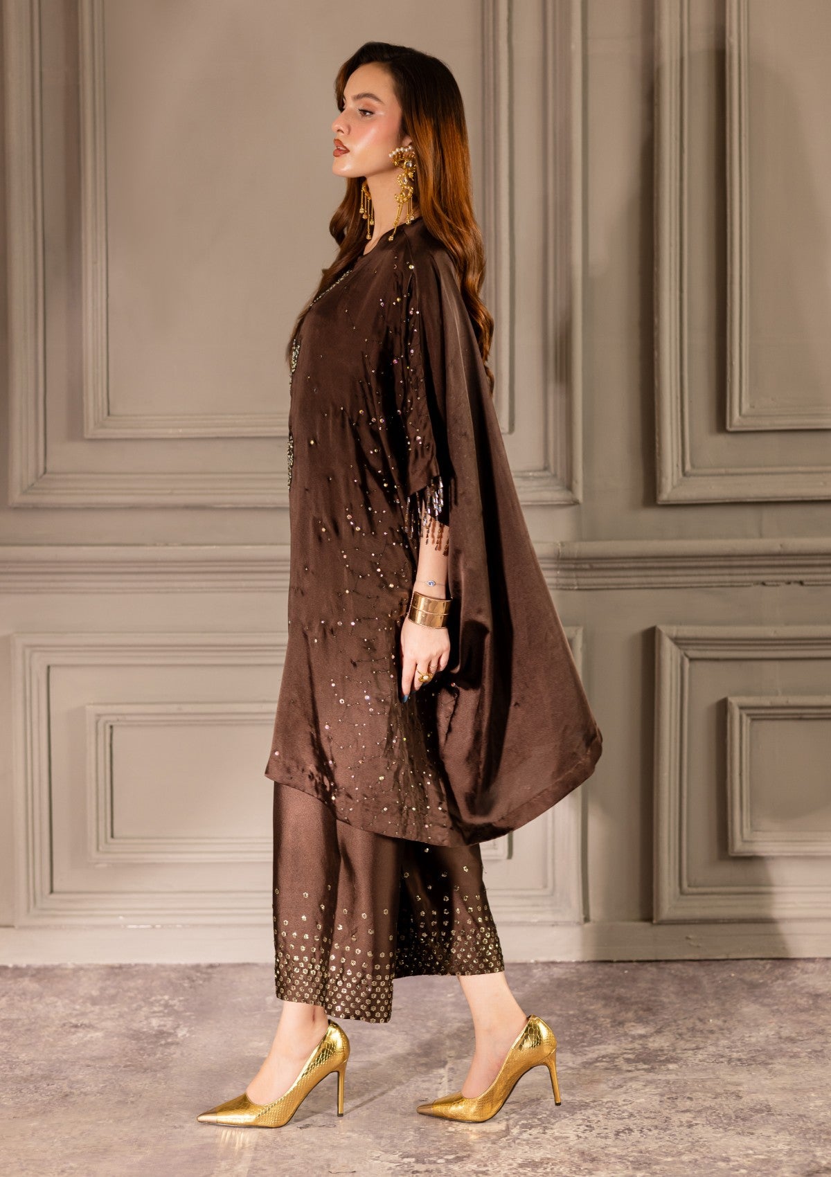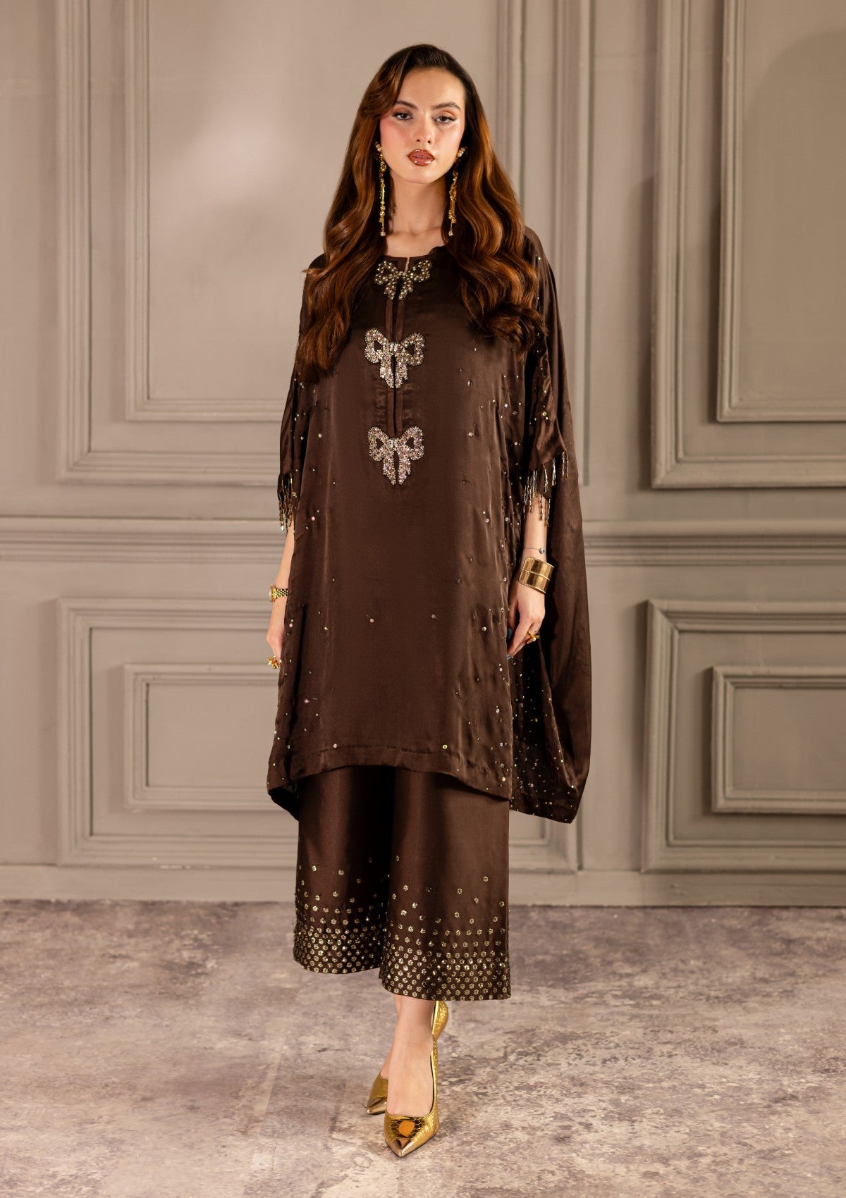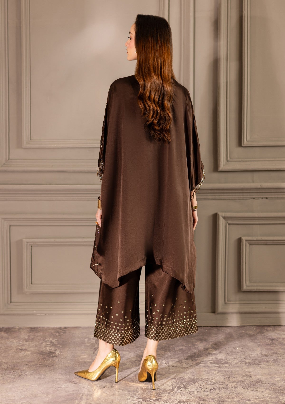 - Embroidered Charmeuse Silk With Hand Embellished Kaftan Shirt