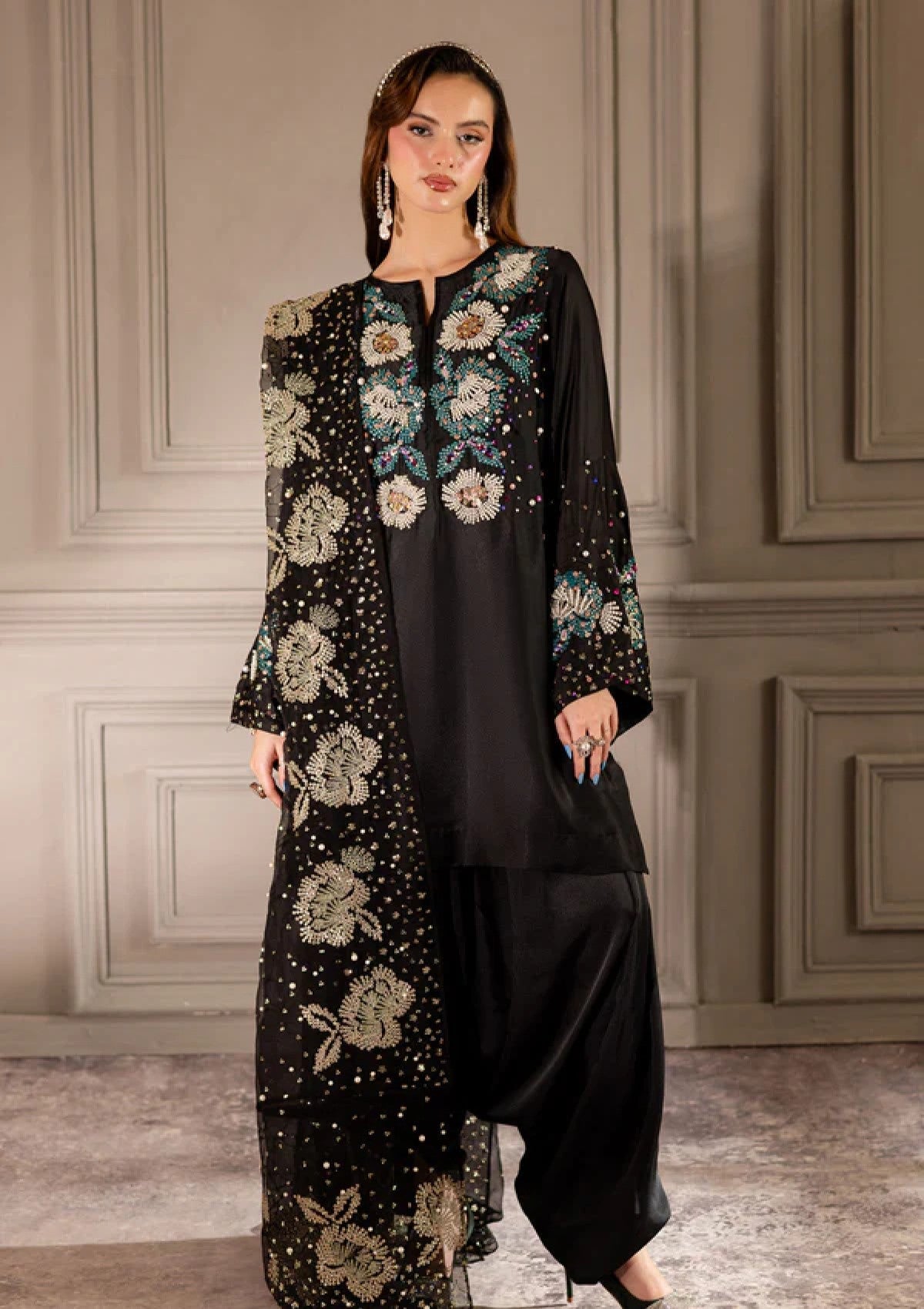 - Embroidered Charmeuse Silk With Hand Embellished Shirt