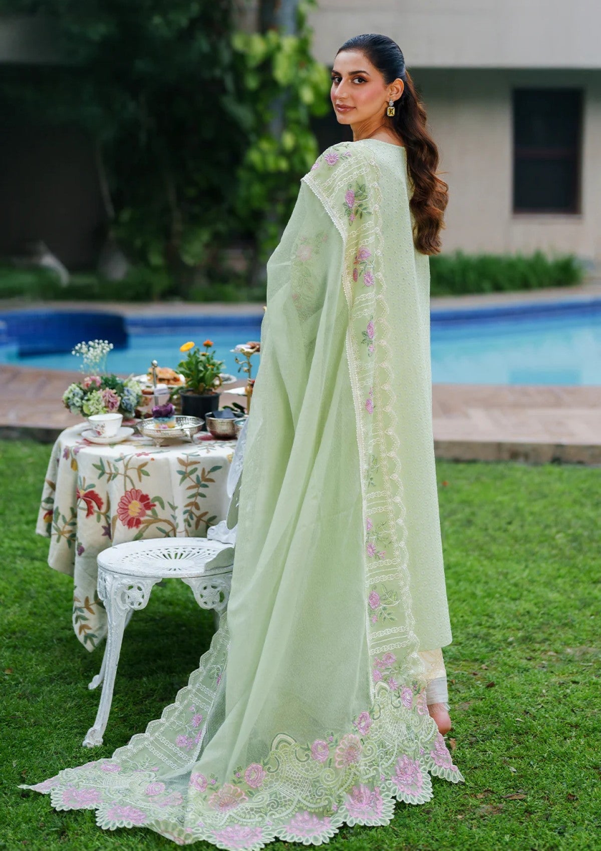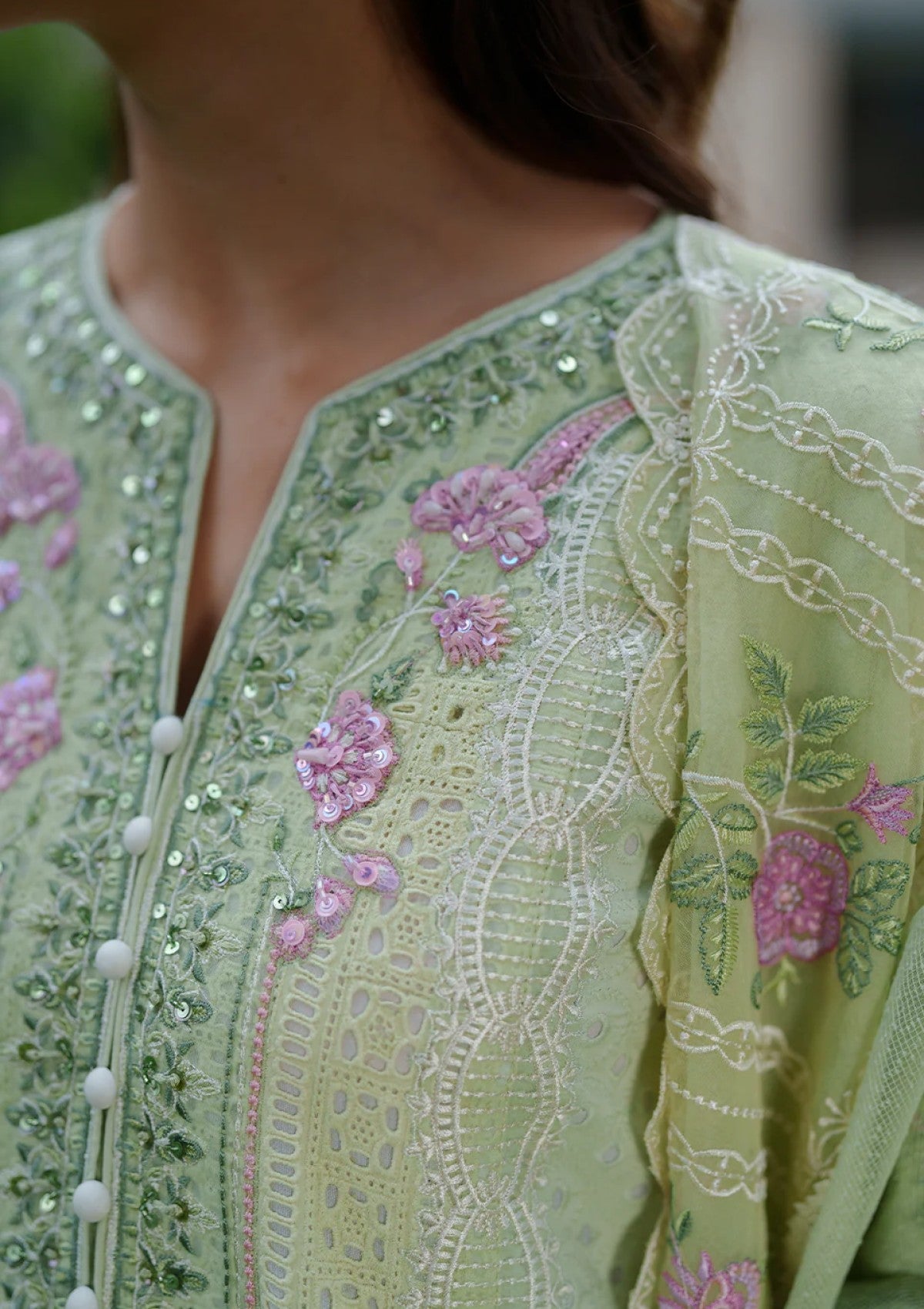 A classically elegant look âÃÂÃÂARYA' features beautifully rendered sleeves with vintage floral embroidery in breathtaking rose pink accented by hues of lilac pinks and lime in twined with laces and borders on a self-embroidered cotton eyelet canvas. The hemline is adorned with embroidered borders with lace inserts and is further enhanced with hand embellished embroidered motifs utilizing pearls, crystals, sequins And beads. The neckline is adorned with hand crafted pearls crystals and sequins. This elegant tunic can be paired with cropped pants with lace inserts and embroiders cotton net dupatta finished with laces and embroidered border. A perfect for evening wearâÃÂæ!