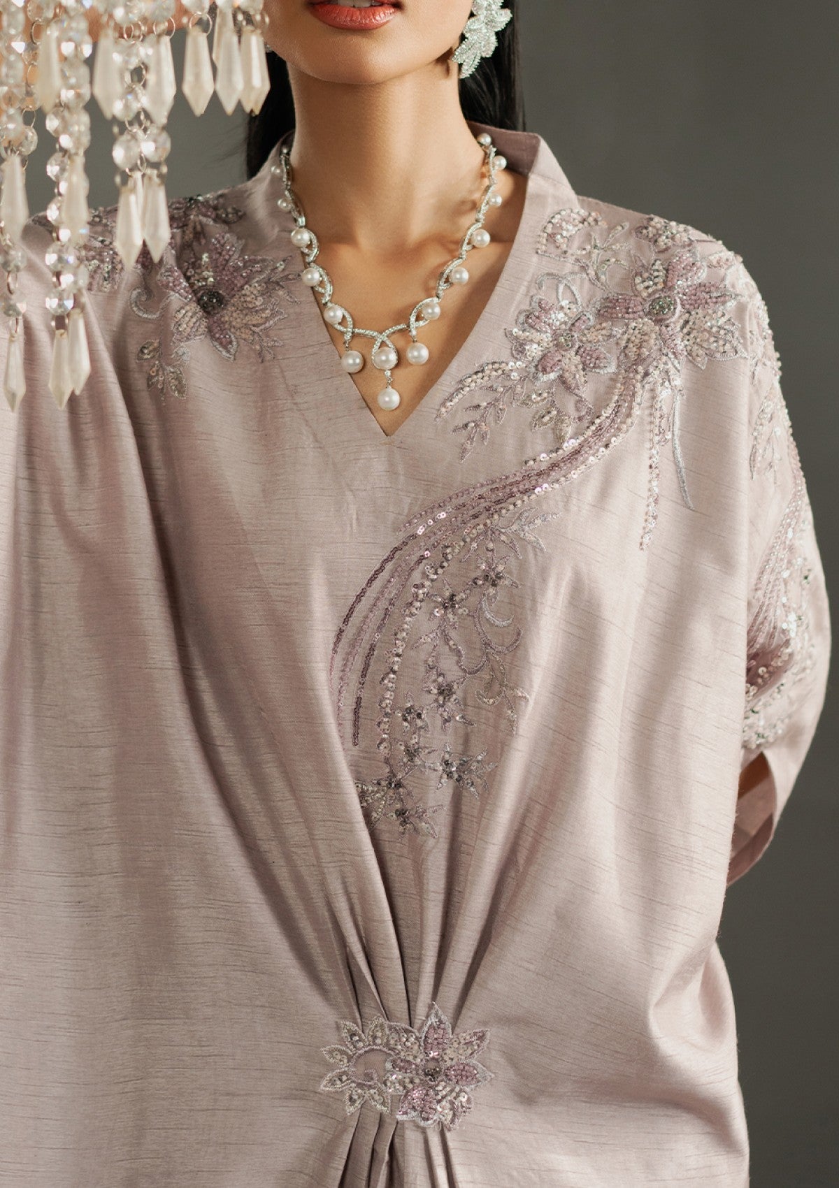 Embrace sheer opulence in the exquisitely curated "LILY"- rendered in the hypnotic hue of Wistful Lilac, This timeless flowing kaftan glistens with the allure of gleaming sequins weaving their spell across a sumptuous canvas adorned with precious stones, creating a mesmerizing composition. Perfect for the most distinguished al fresco affairs and soirÃÂées, this feminine and flirty ensemble ensures you radiate unparalleled sophistication and elegance.