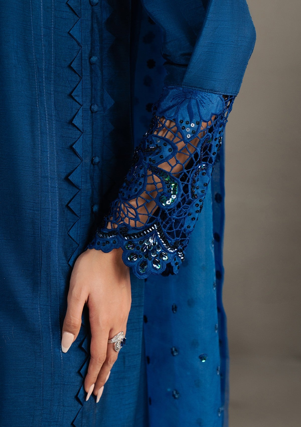 Immerse yourself in unparalleled opulence with CARINA-a breathtaking masterpiece adorned in a symphony of radiant crystals, lustrous pearls, and intricately crafted cut Dana. This ensemble reveals a refined, elongated silhouette, with a shirt that is impeccably tailored to evoke an aura of regal grandeur. Paired with flawlessly sculpted trousers and a beautifully designed organza dupatta with geometric patterns, laser-cut floral motifs. âÃÂÃÂCARINA' exudes an ethereal elegance, encapsulating the very essence of luxury and haute couture. Every meticulously curated detail of this silhouette speaks to an unmatched level of sophistication, commanding attention and captivating all who behold it. 'CARINA' is the epitome of timeless allure-an unparalleled statement of high fashion.