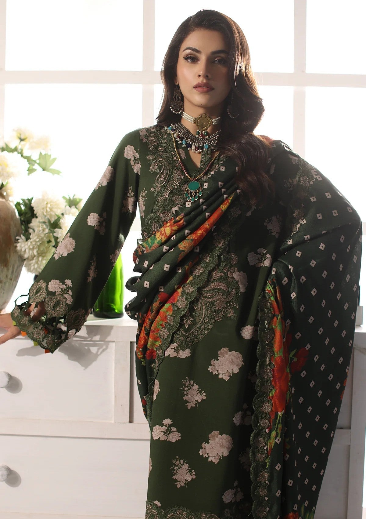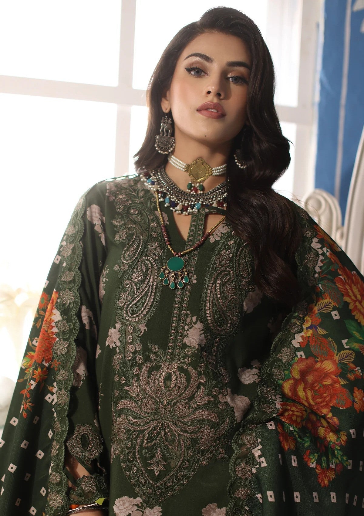- Embroidery Printed Linen Shawl 2.50 Mtr
