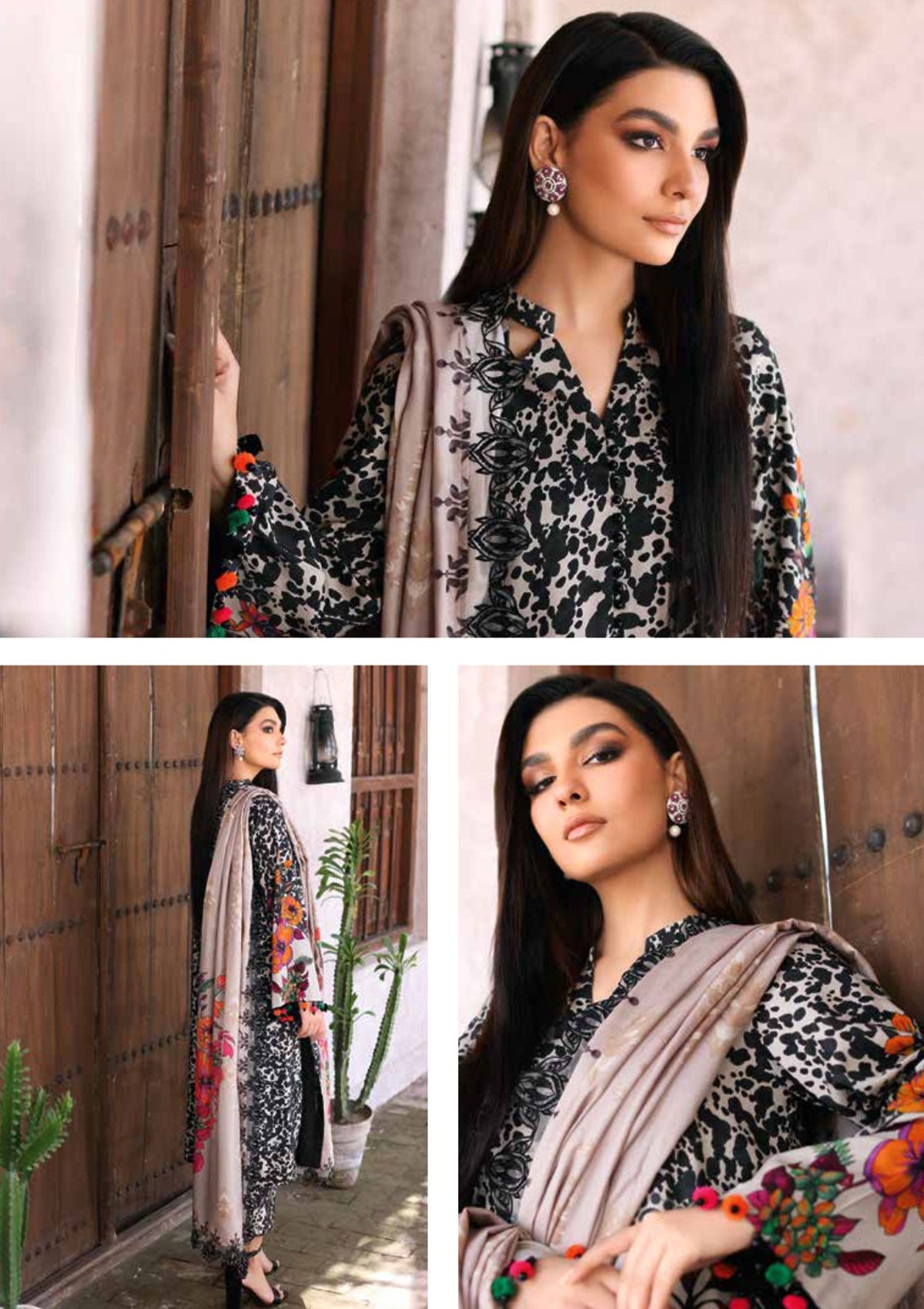 - Unstitched Printed Staple Suit With Embroidered Wool Shawl