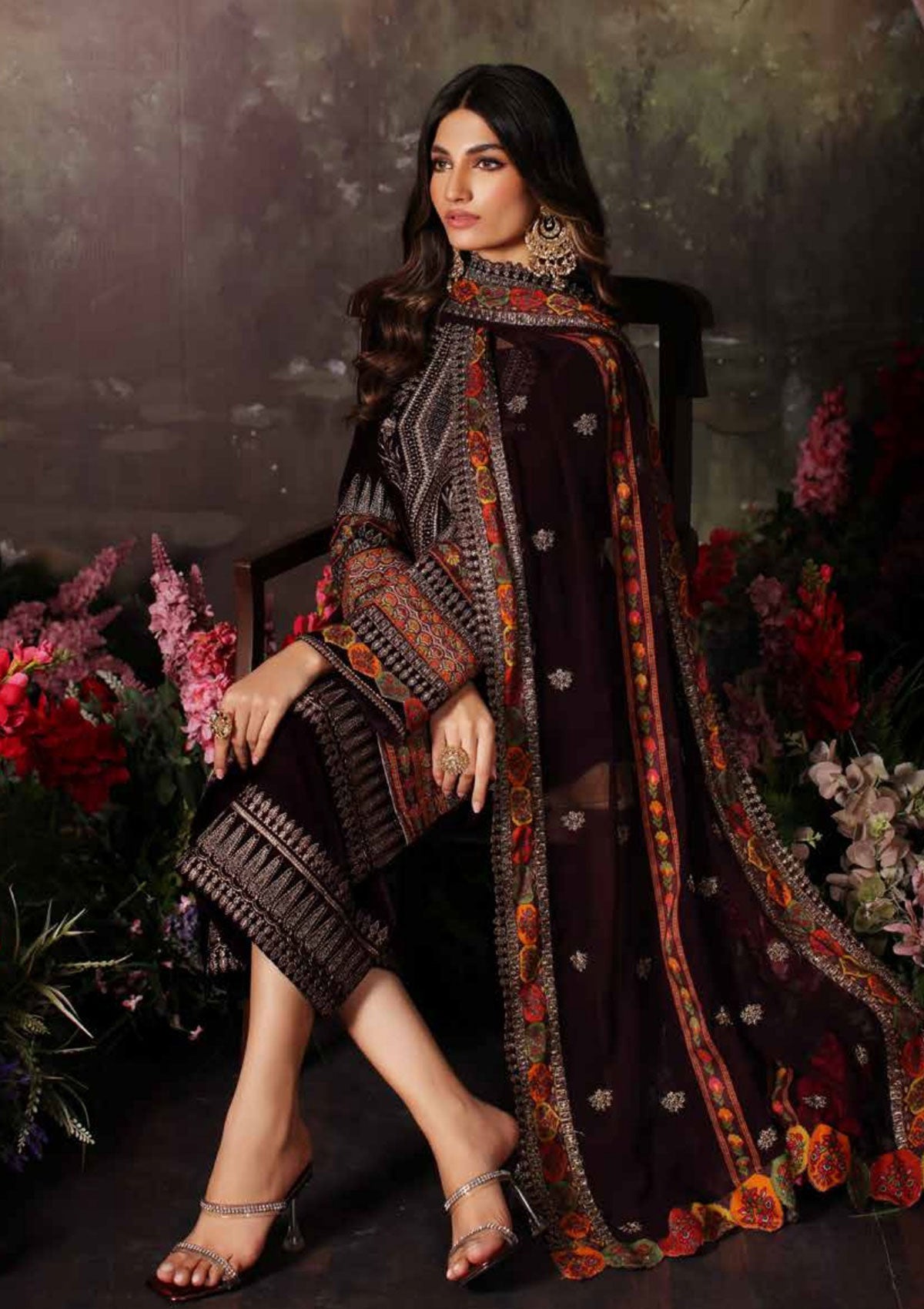 - Unstitched Embroidered Velvet Suit with Embroidered Chiffon Dupatta