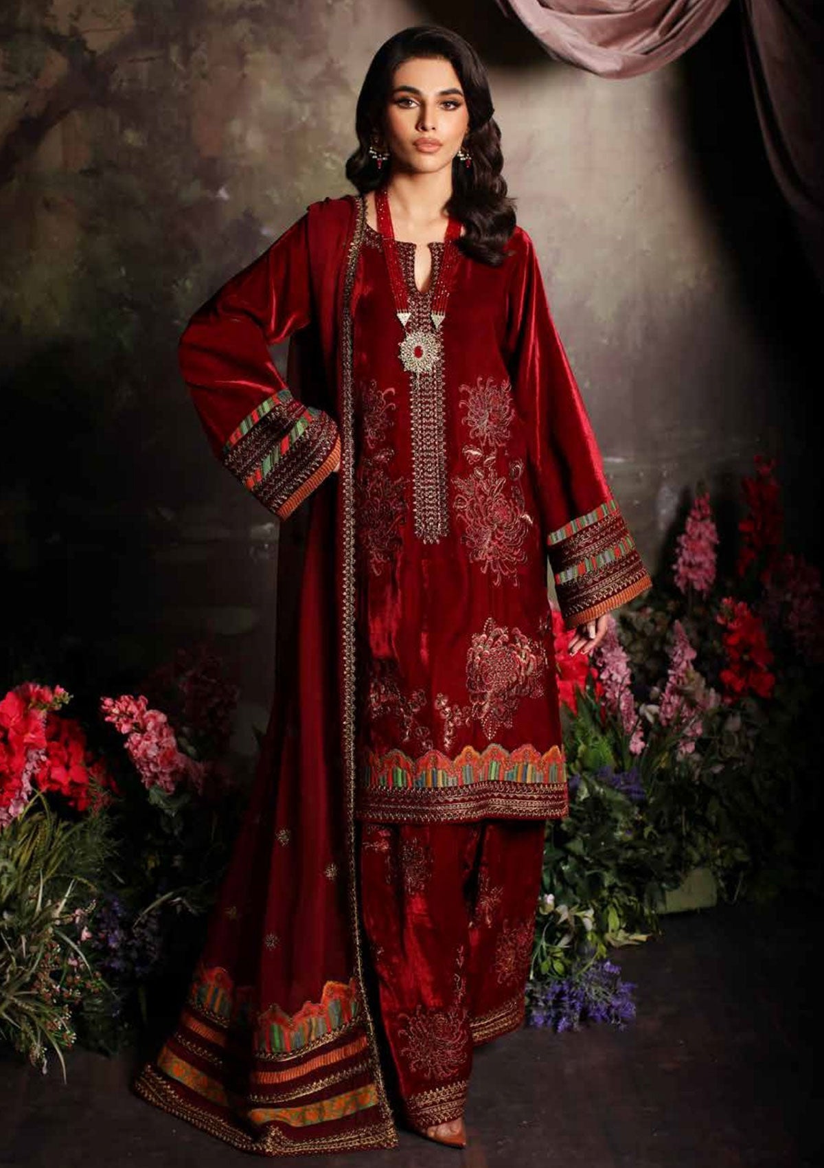- Unstitched Embroidered Velvet Suit with Embroidered Chiffon Dupatta