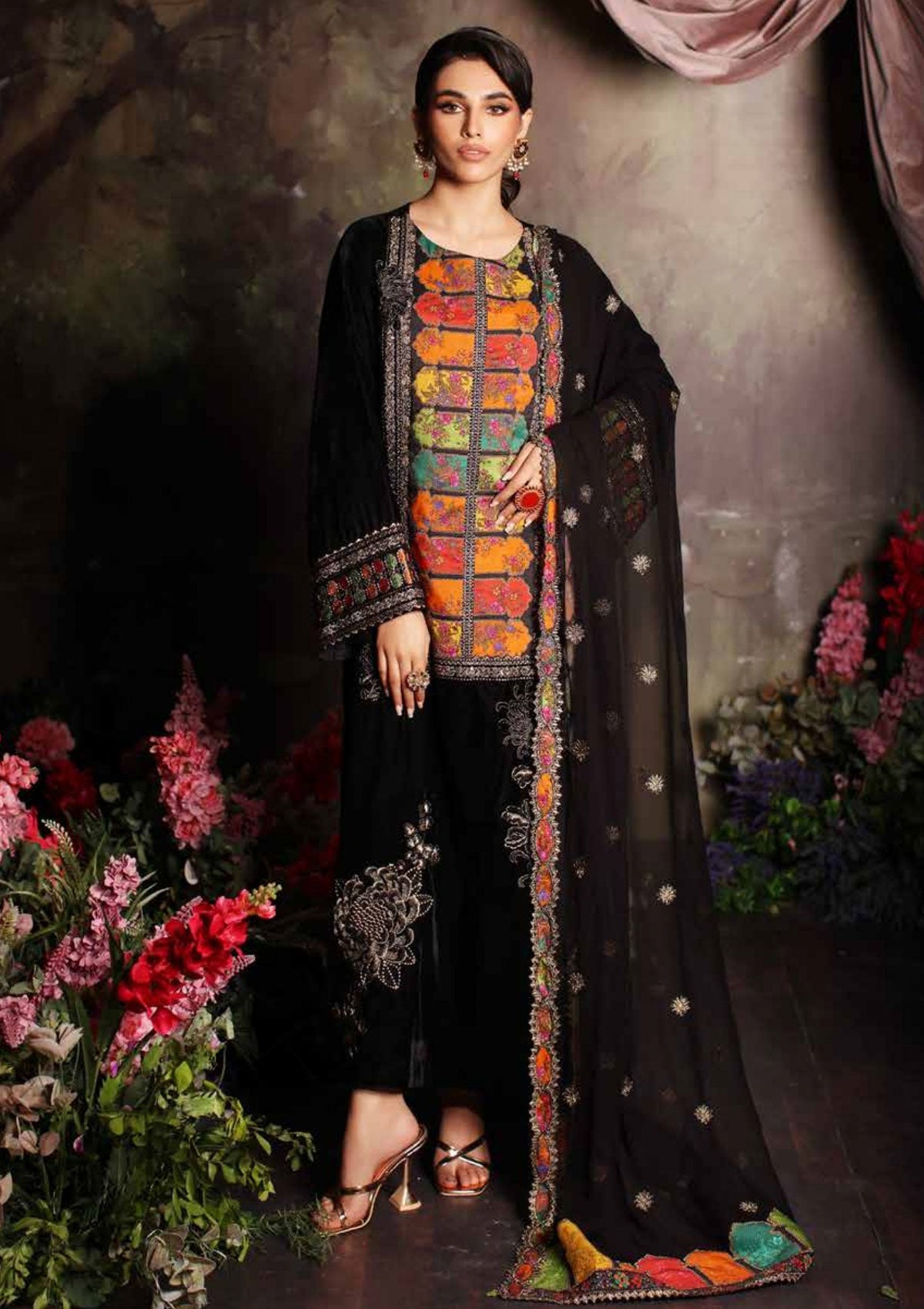 - Unstitched Embroidered Velvet Suit with Embroidered Chiffon Dupatta