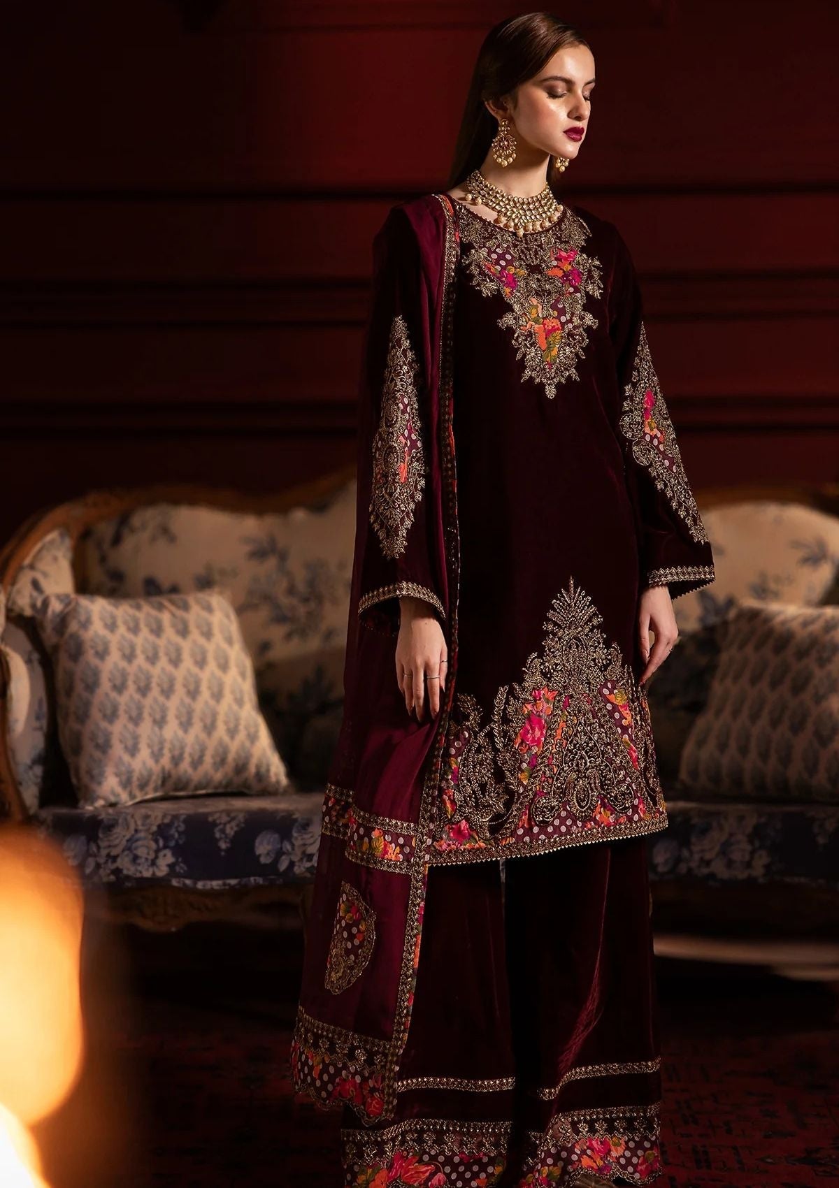 Embroidery Dyed Velvet Front 1.25 Mtr