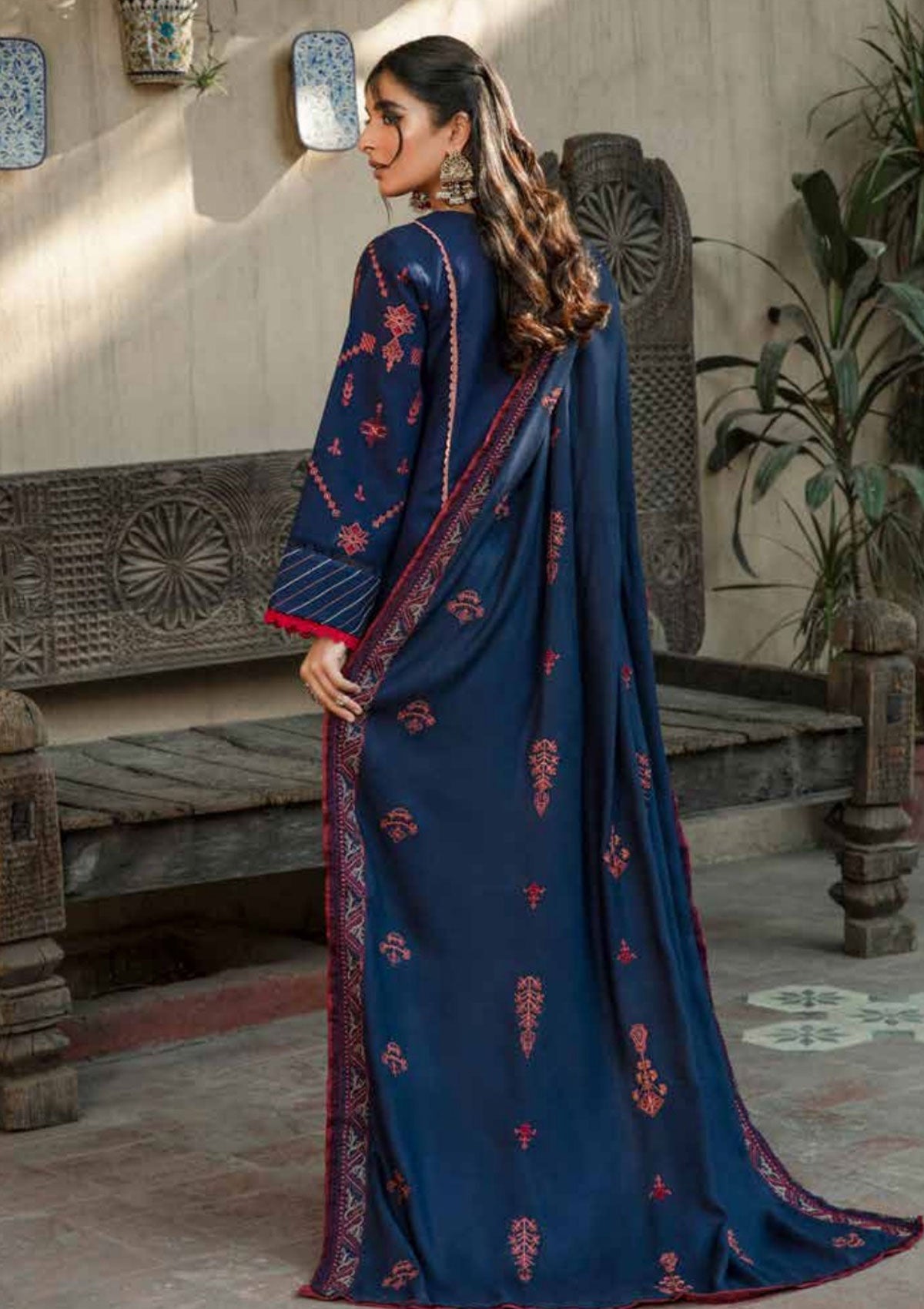 - Dyed Embrodered Shawl 2.5 Mtr
