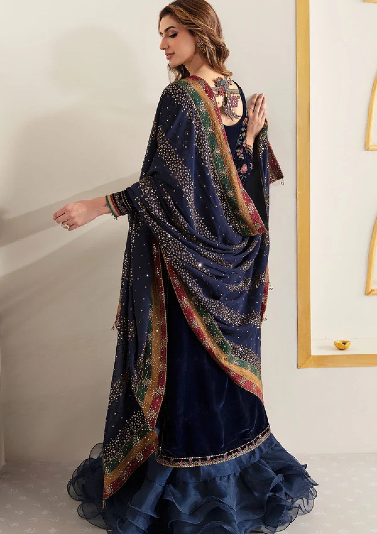 - Embroidered Pure Velvet Front, Sleeves & Back Border