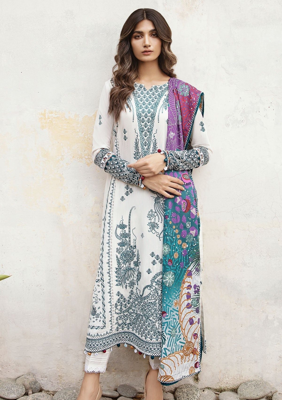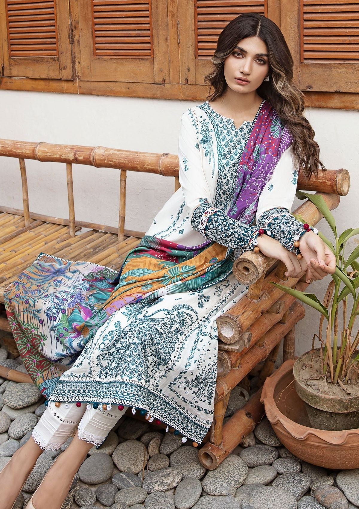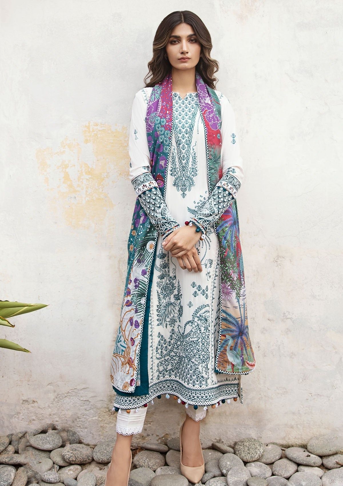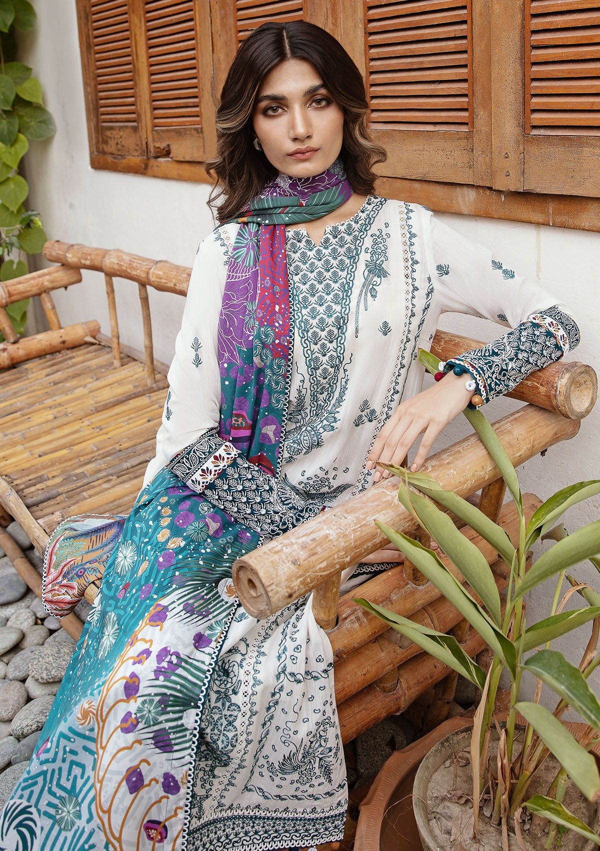 Embroidered Sleeve BordersEmbroidered Front & Back BordersDyed Fine Slub Back & TrouserDigital Printed Viscose Shawl