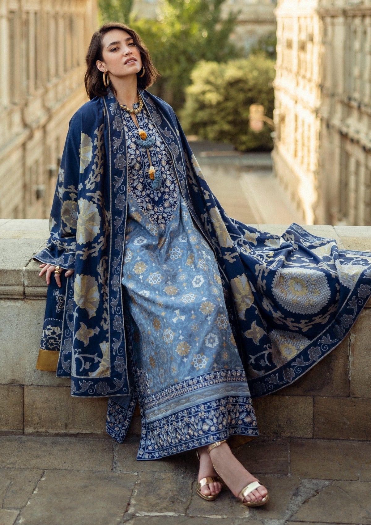 - Embroidered front and back daman border (silk)