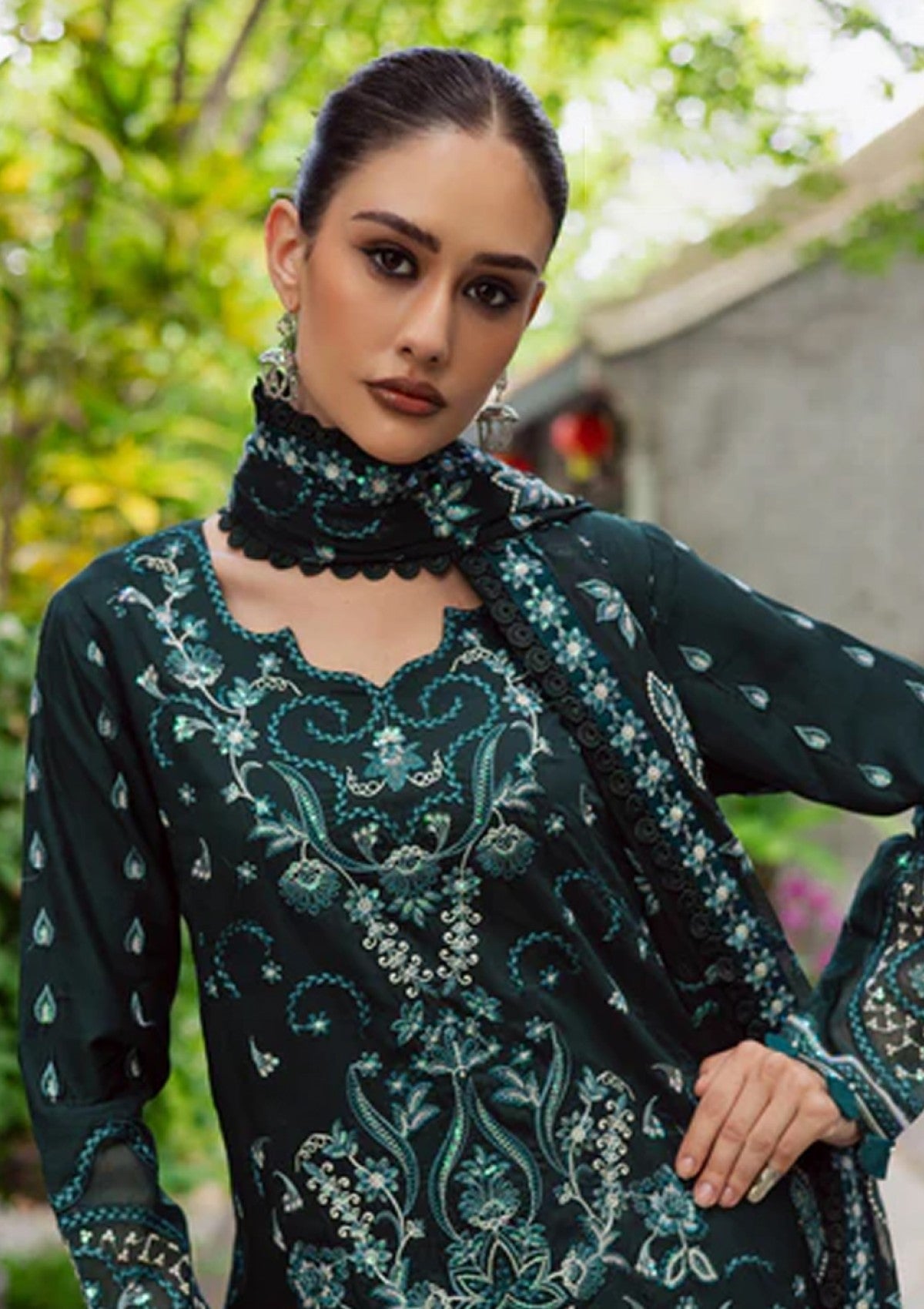 - Dyed Viscose Sequins Embroidered Front
