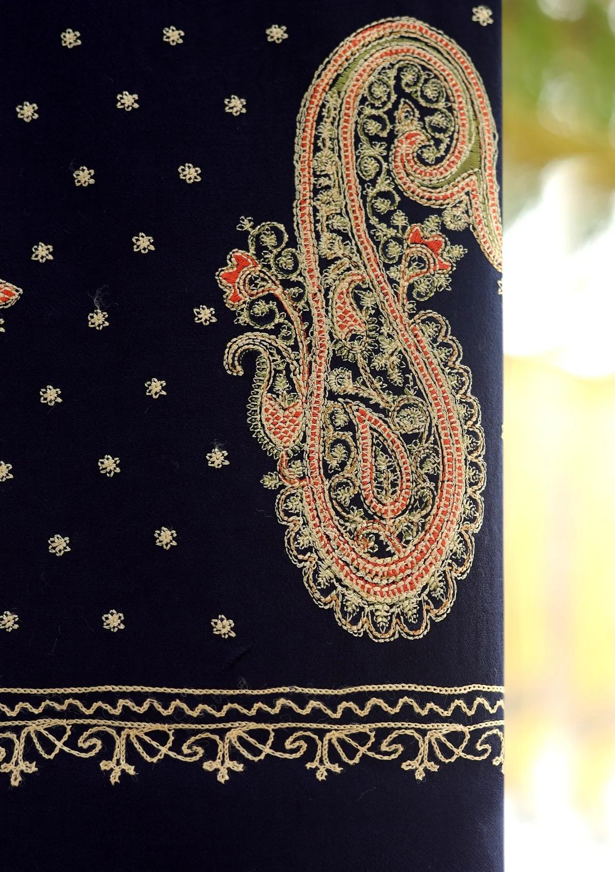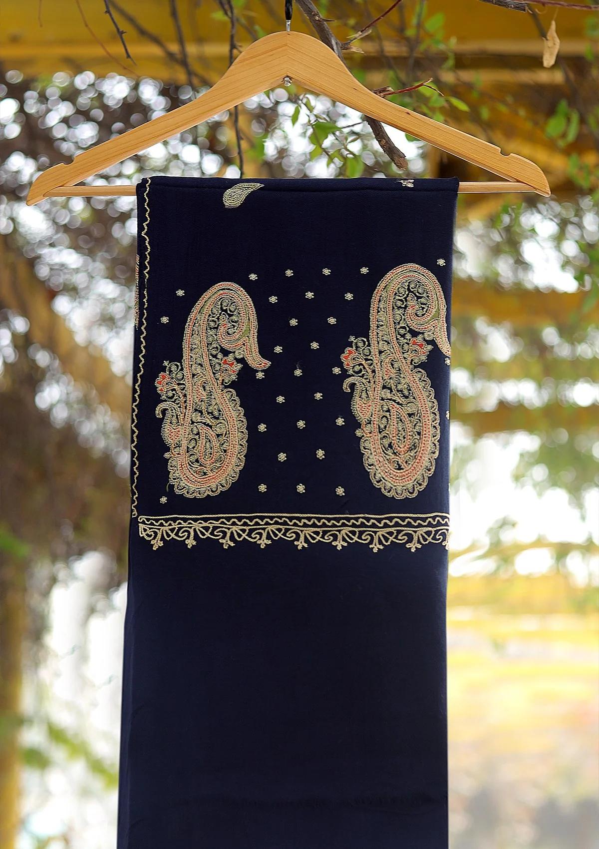Wool Emboridered Shawl D - 08 - N BLUE