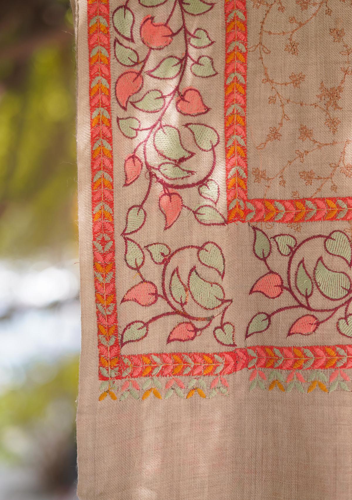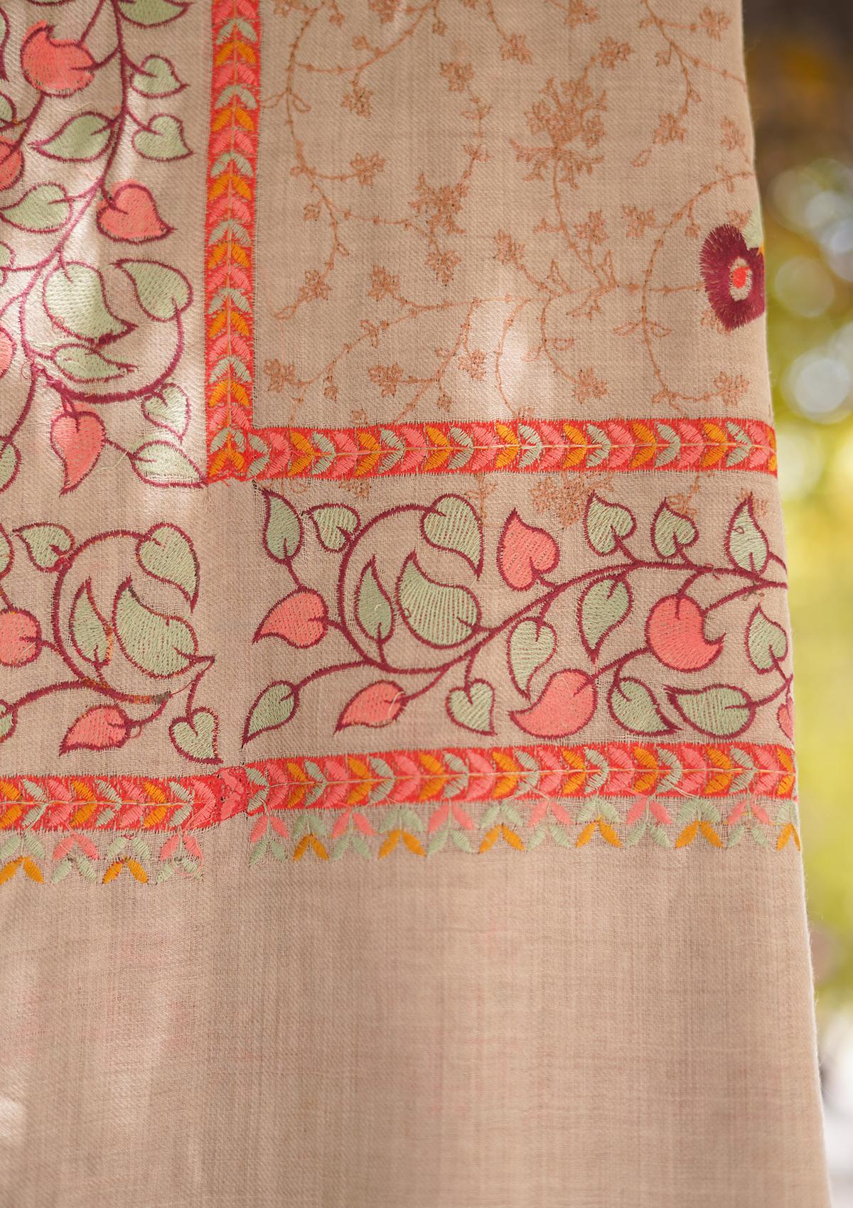 Wool Embroidered Shawl D - 13 - BROWN 1