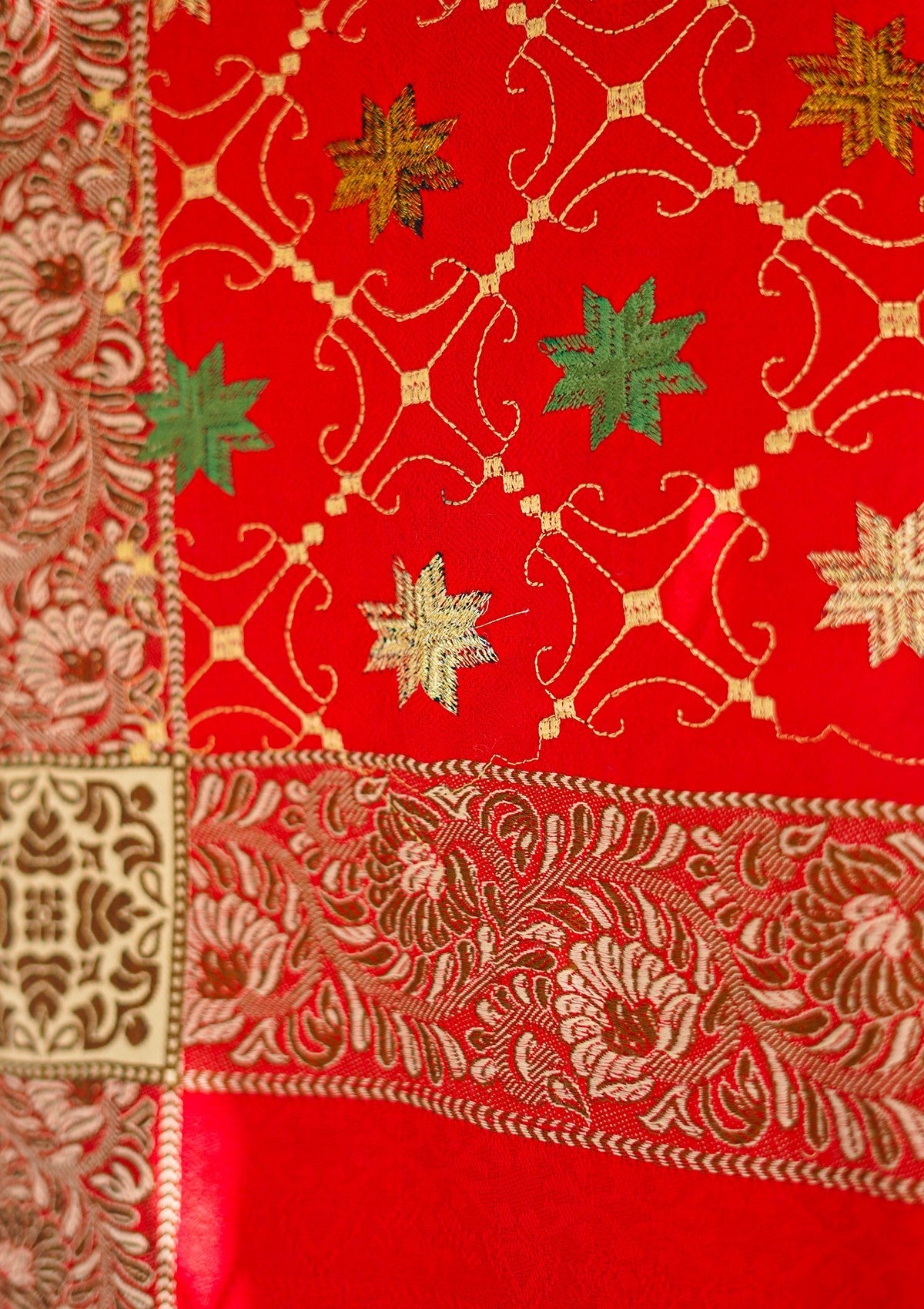 Wool Embroidered Shawl D - 18 - Red