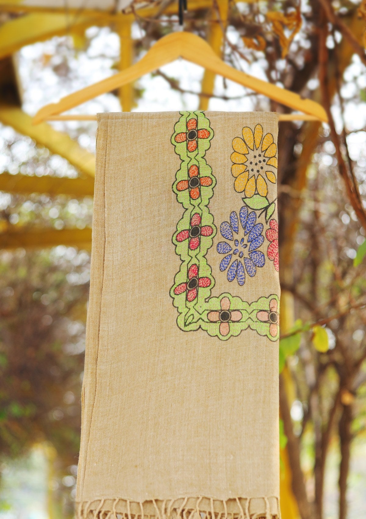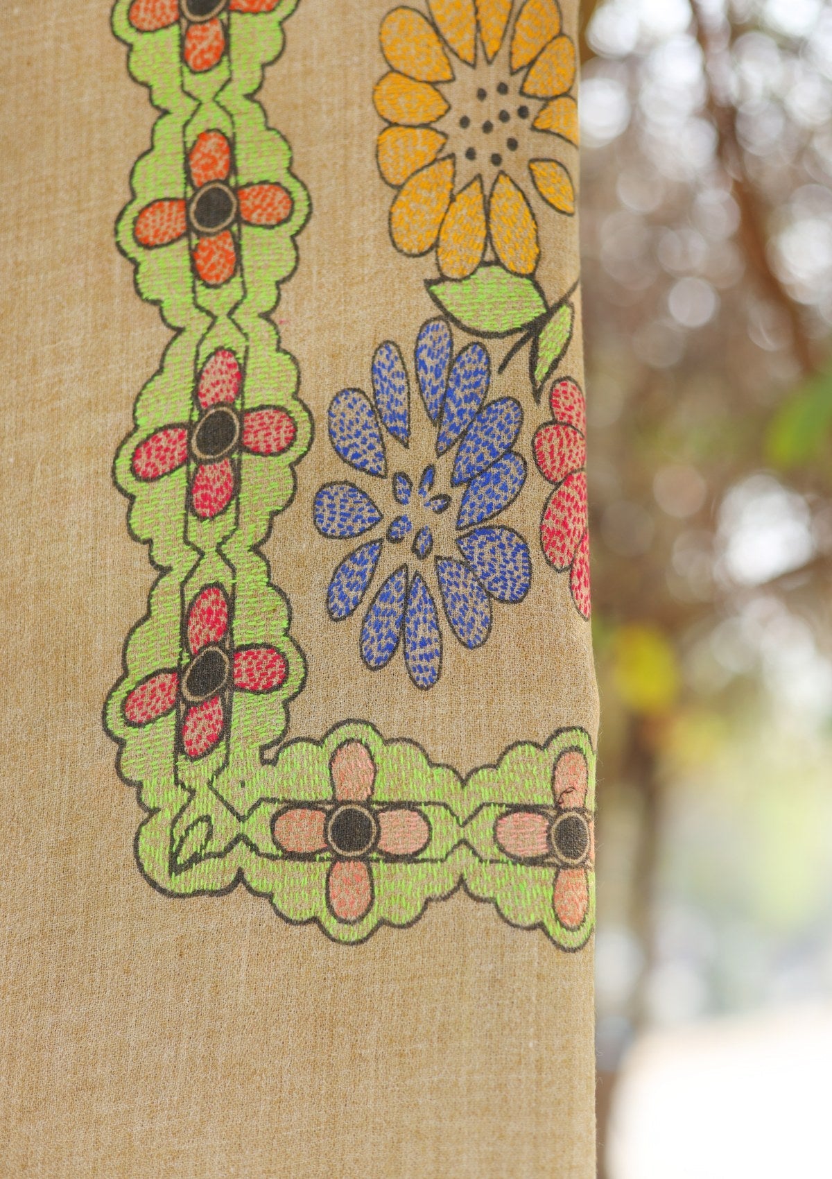 Wool Needle Work Shawl D - 42 - Brown