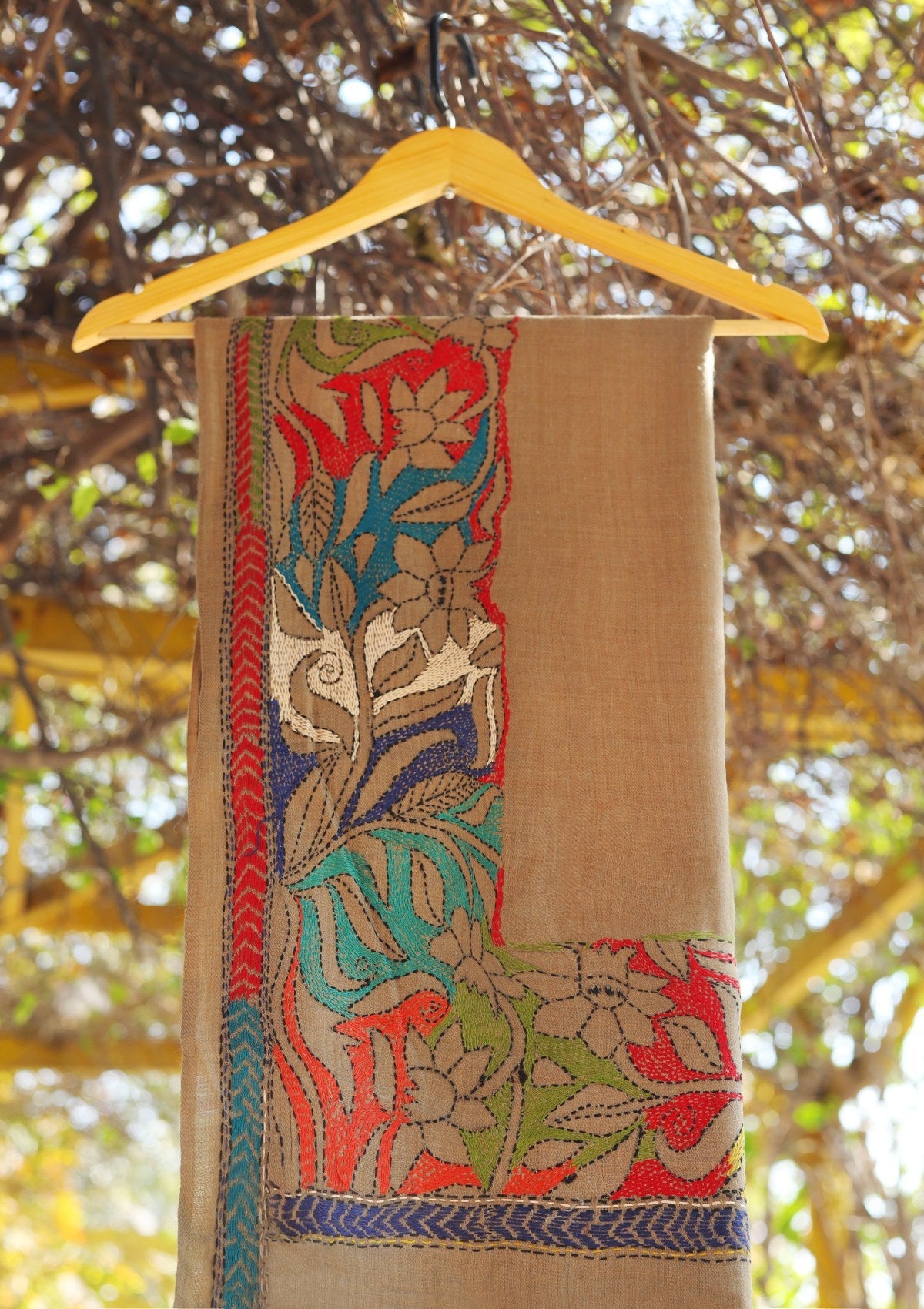 Wool Needle Work Shawl D - 44 - D Mehendi