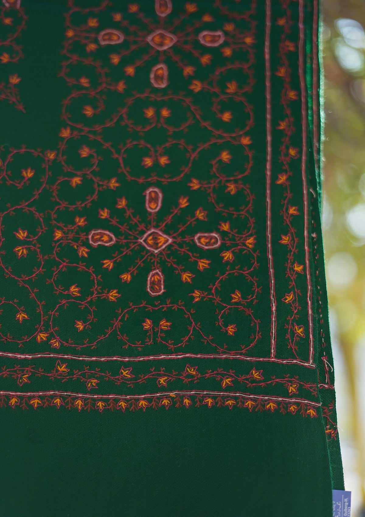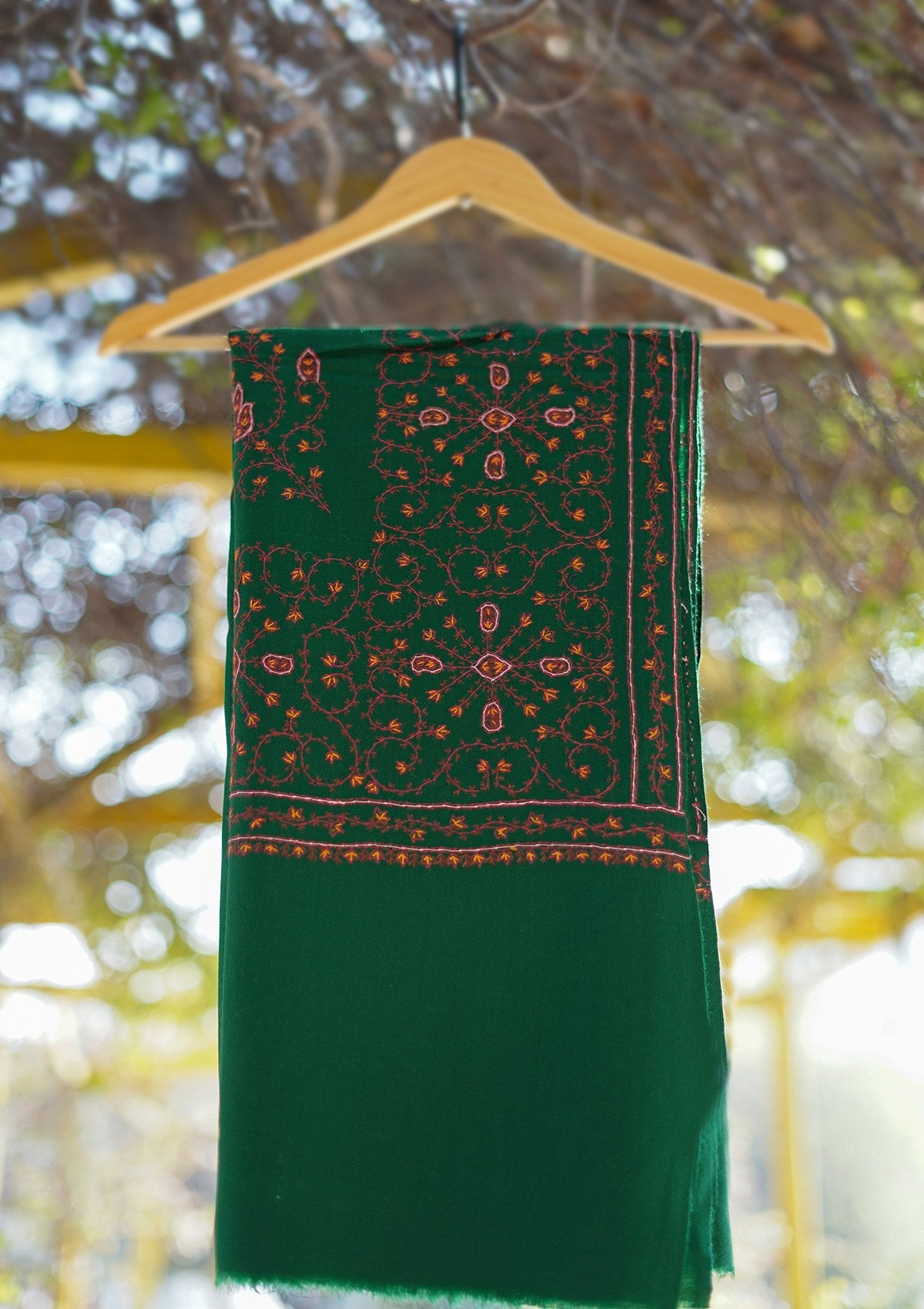 Wool Needle Work Shawl D - 46 - B Green