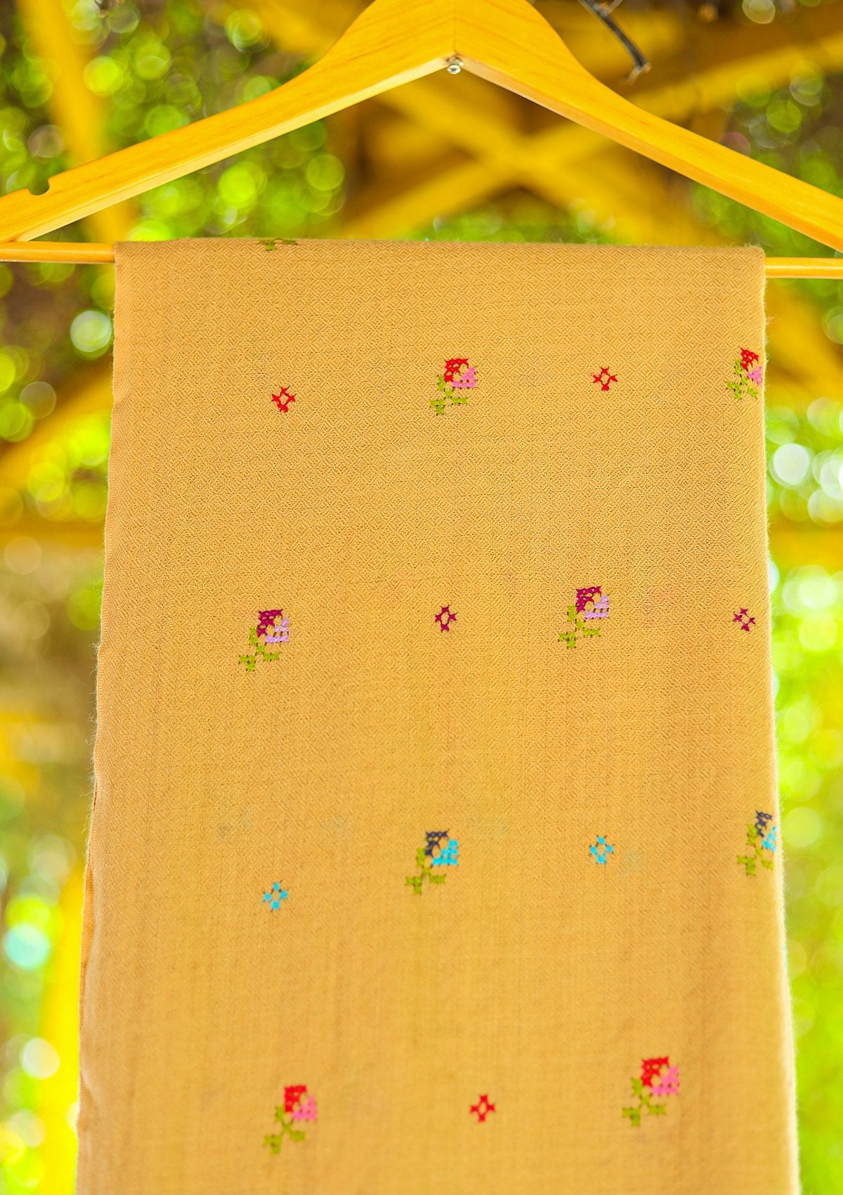 Wool Needle Work Shawl D - 55 - Beige