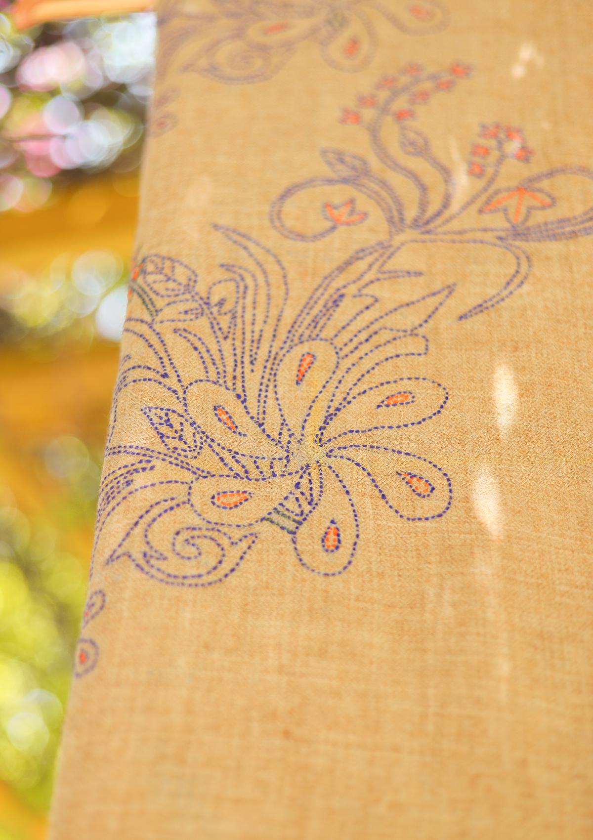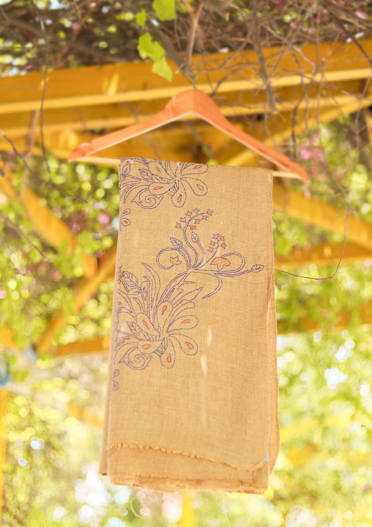 Wool Needle Work Shawl D - 55 - BROWN