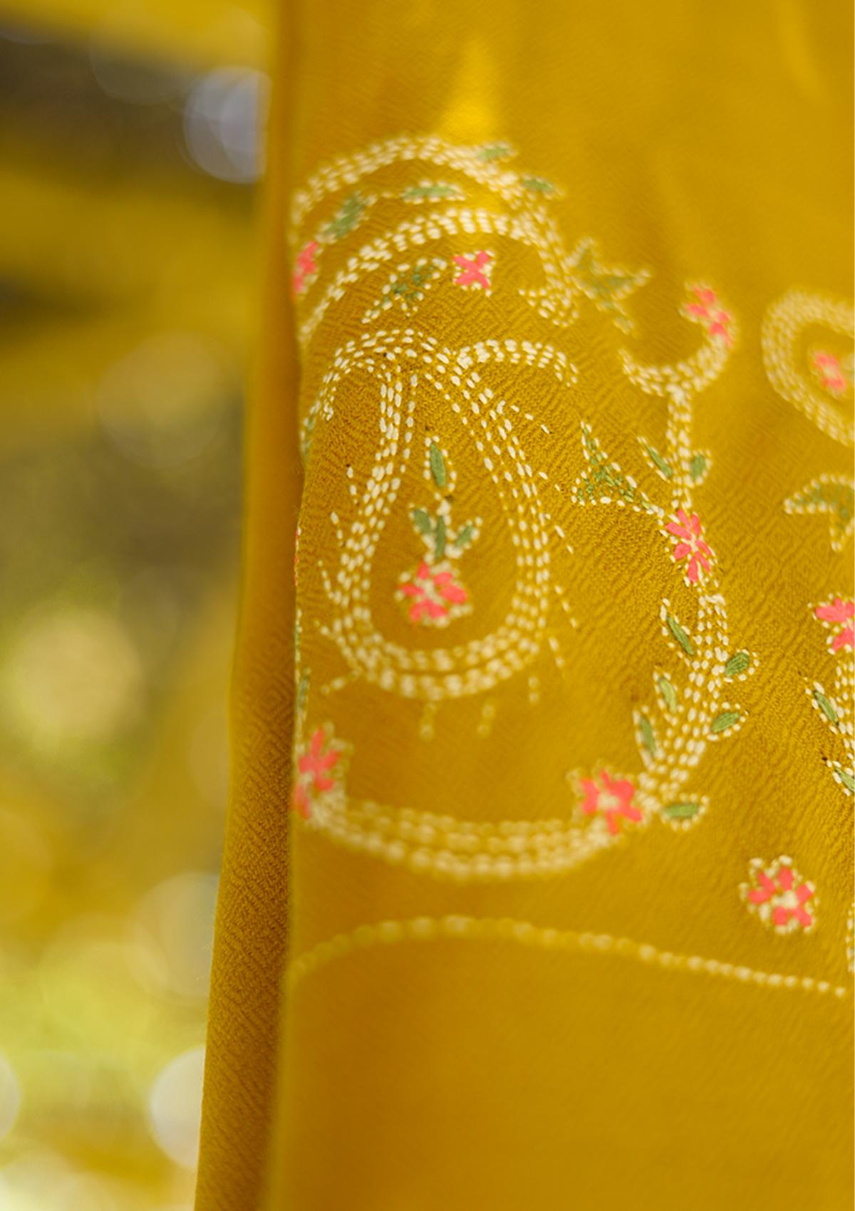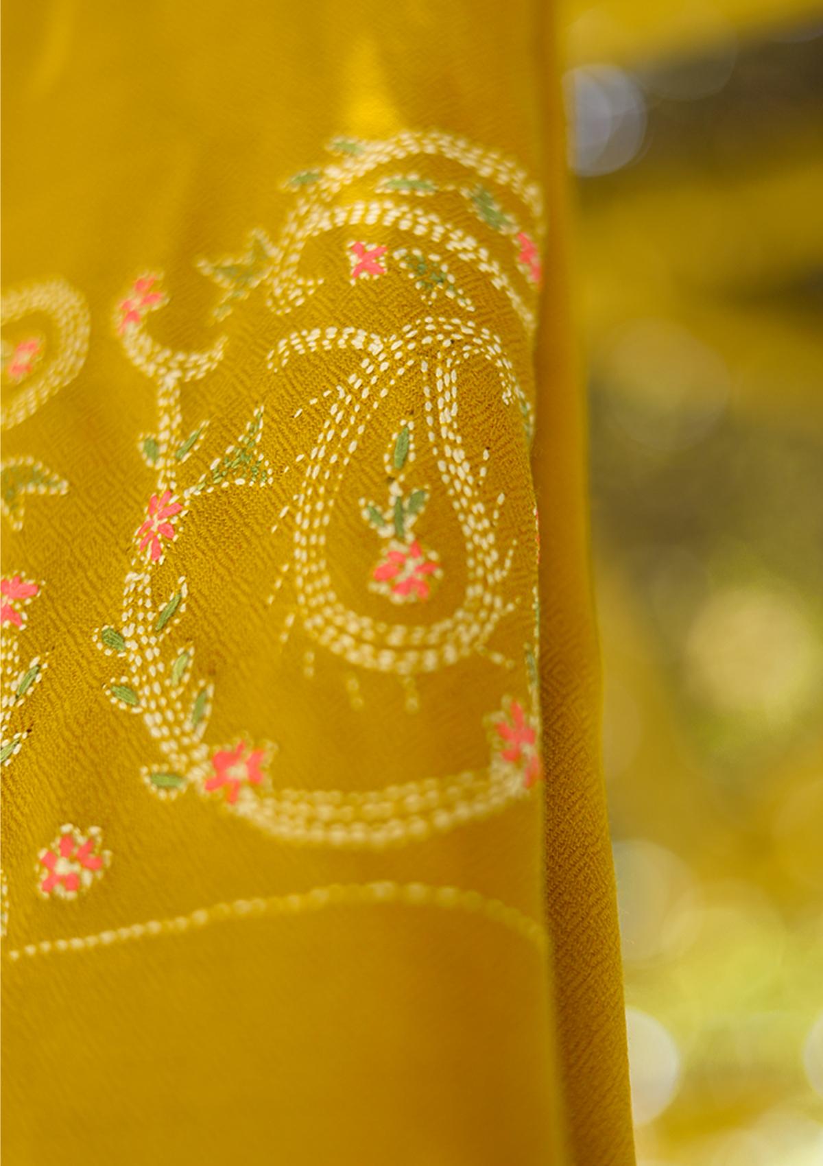 Wool Needle Work Shawl D - 57 - MUSTARD