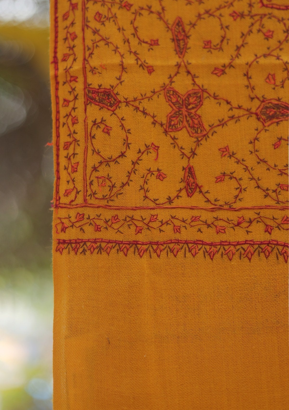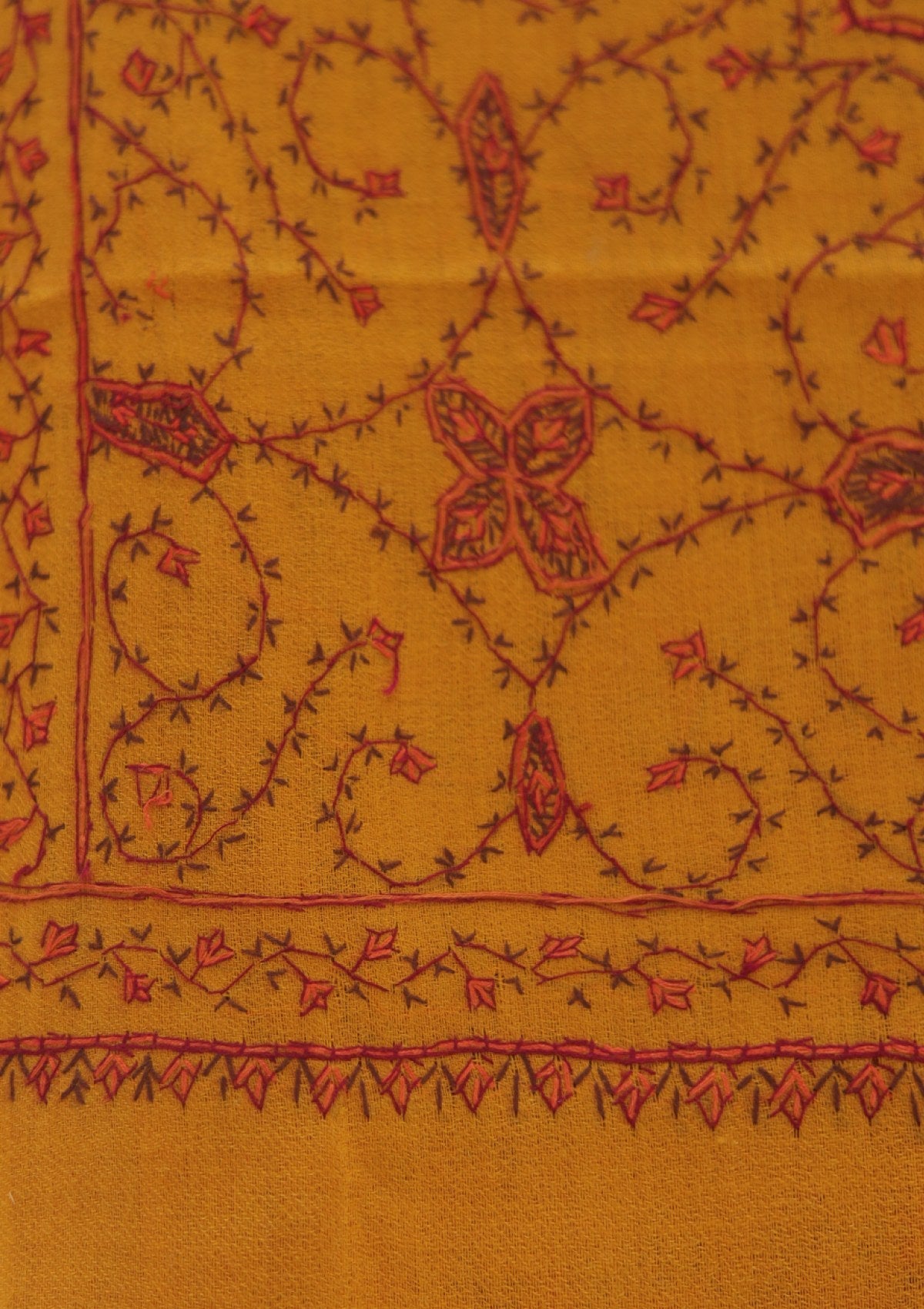 Wool Needle Work Shawl D - 60 - Mustard