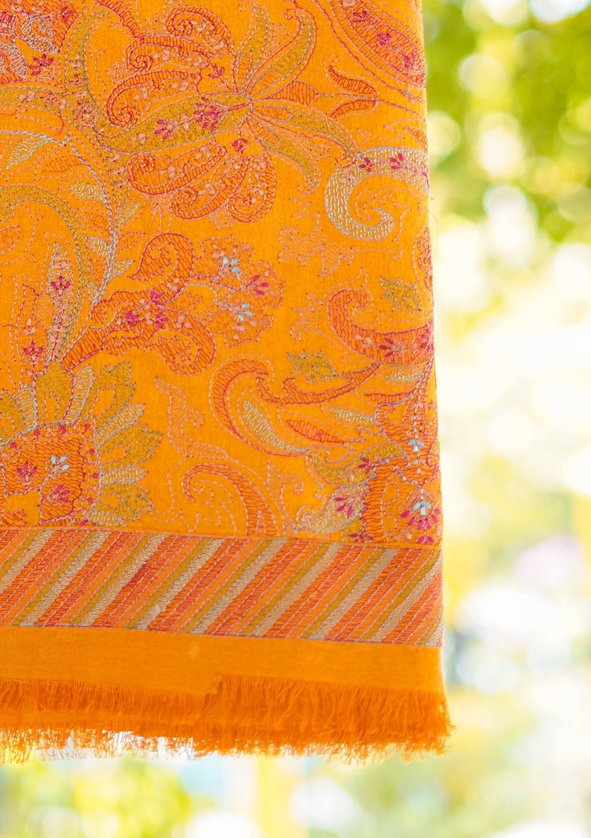Youdia Karandi Emb Shawl D - 02 - Mustard